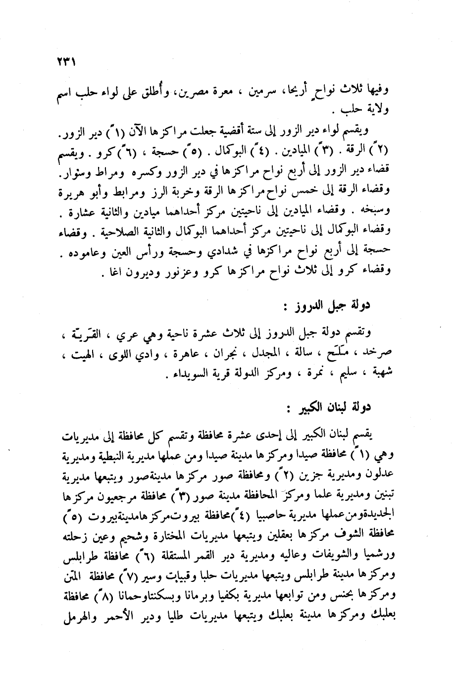 يقسم لبنان الكبير إلى إحدى عشرة محافظة إلى مديريات وهي