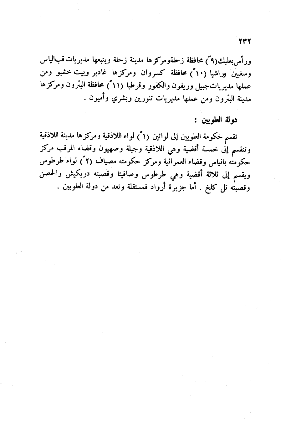 2ً لواء طرطوس ويقسم إلى ثلاث أقضية وهي طرطوس وصافيتا وقصبته دريكيش والحصن وقصبته تل كلخ. أما جزيرة أرواد فمستقلة وتعد من دولة العلويين.