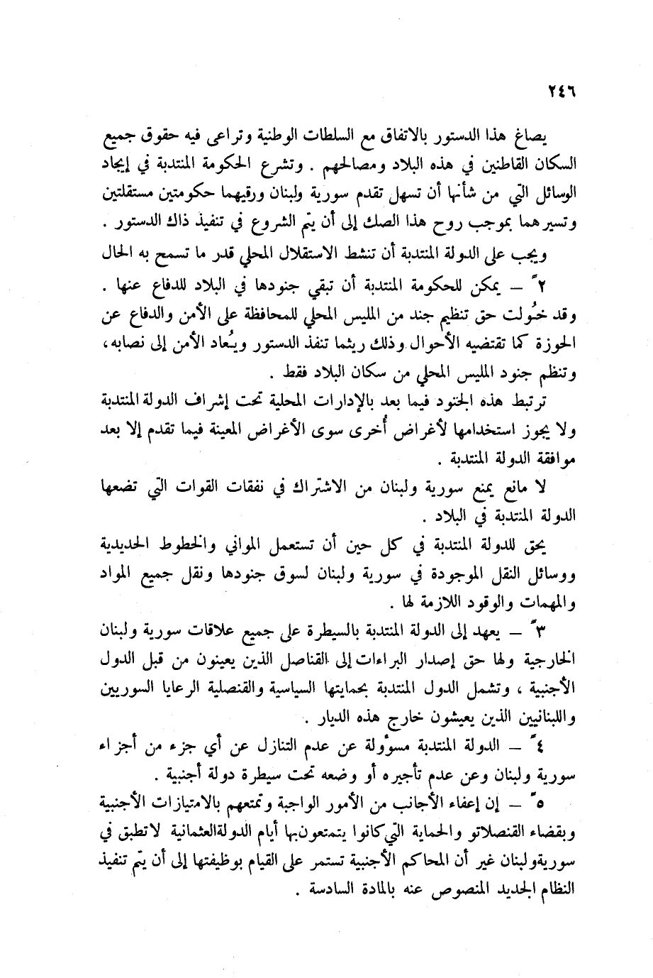 لا مانع يمنع سورية ولبنان من الاشتراك في نفقات القوات التي تضعها الدولة المنتدبة في البلاد.