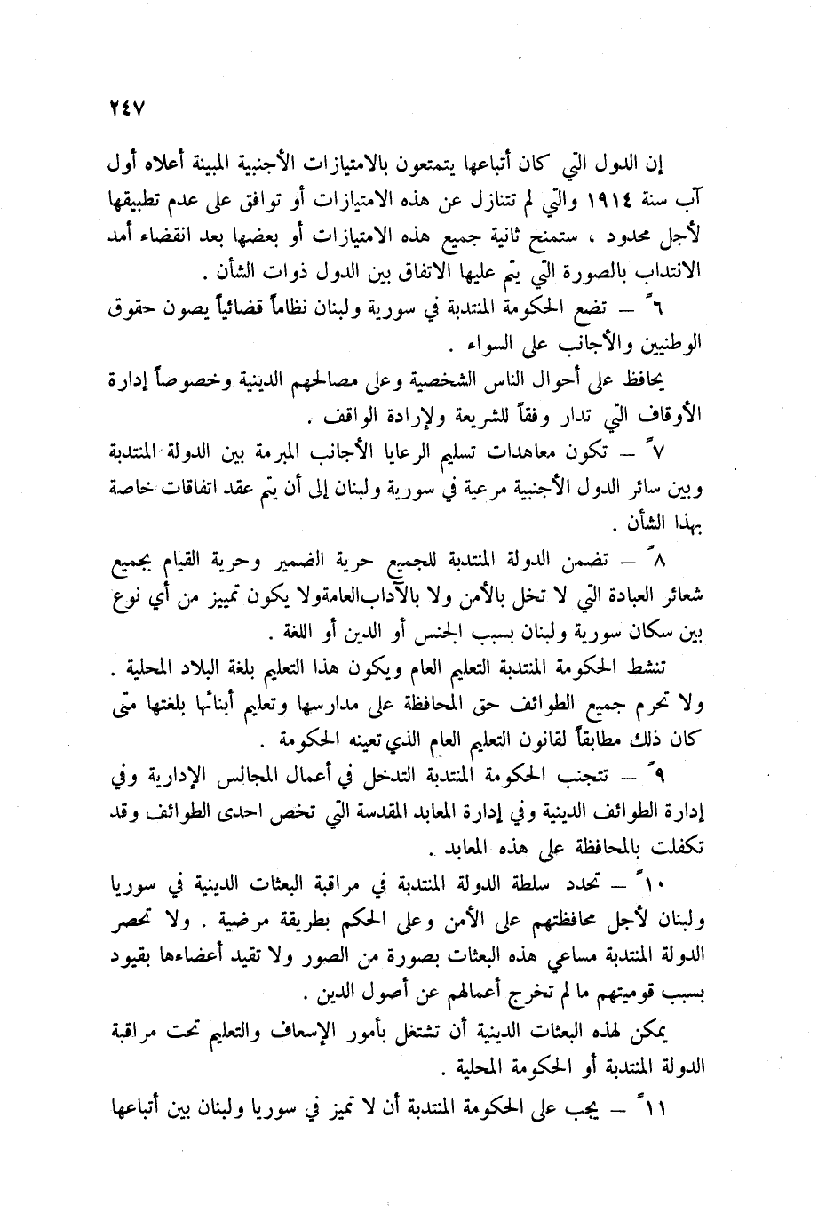 11 - يجب على الحكومة المنتدبة أن لا تميز في سوريا ولبنان بين أتباعها
