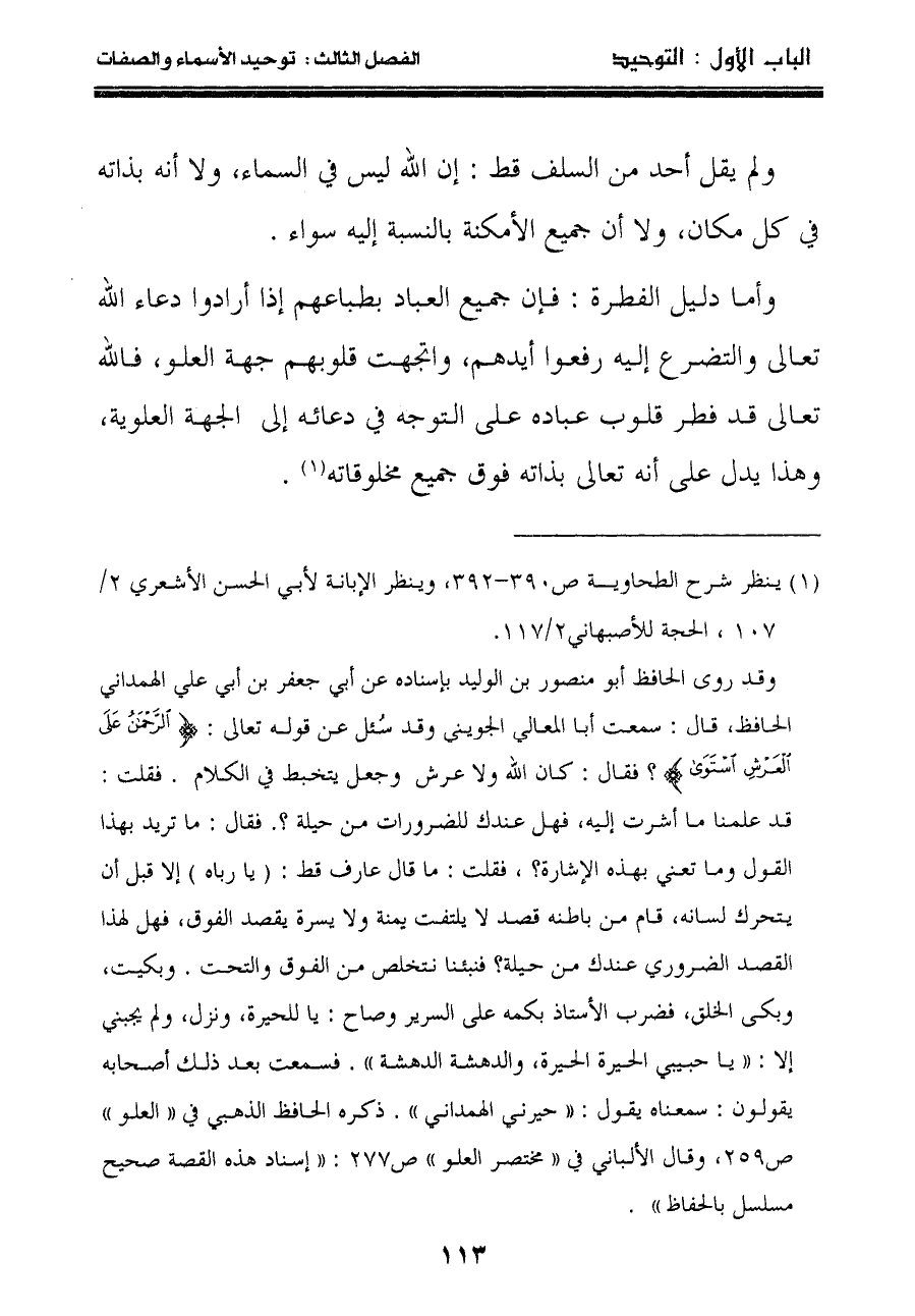 "١" ينظر شرح الطحاوية ص٣٩٠-٣٩٢، وينظر الإبانة لأبي الحسن الأشعري ٢/١٠٧، الحجة للأصبهاني٢/١١٧.