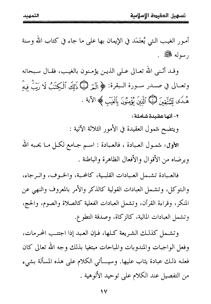 كتاب [شرح] تسهيل العقيدة الإسلامية - ط 2 (اسم الجزء: الكتاب)
