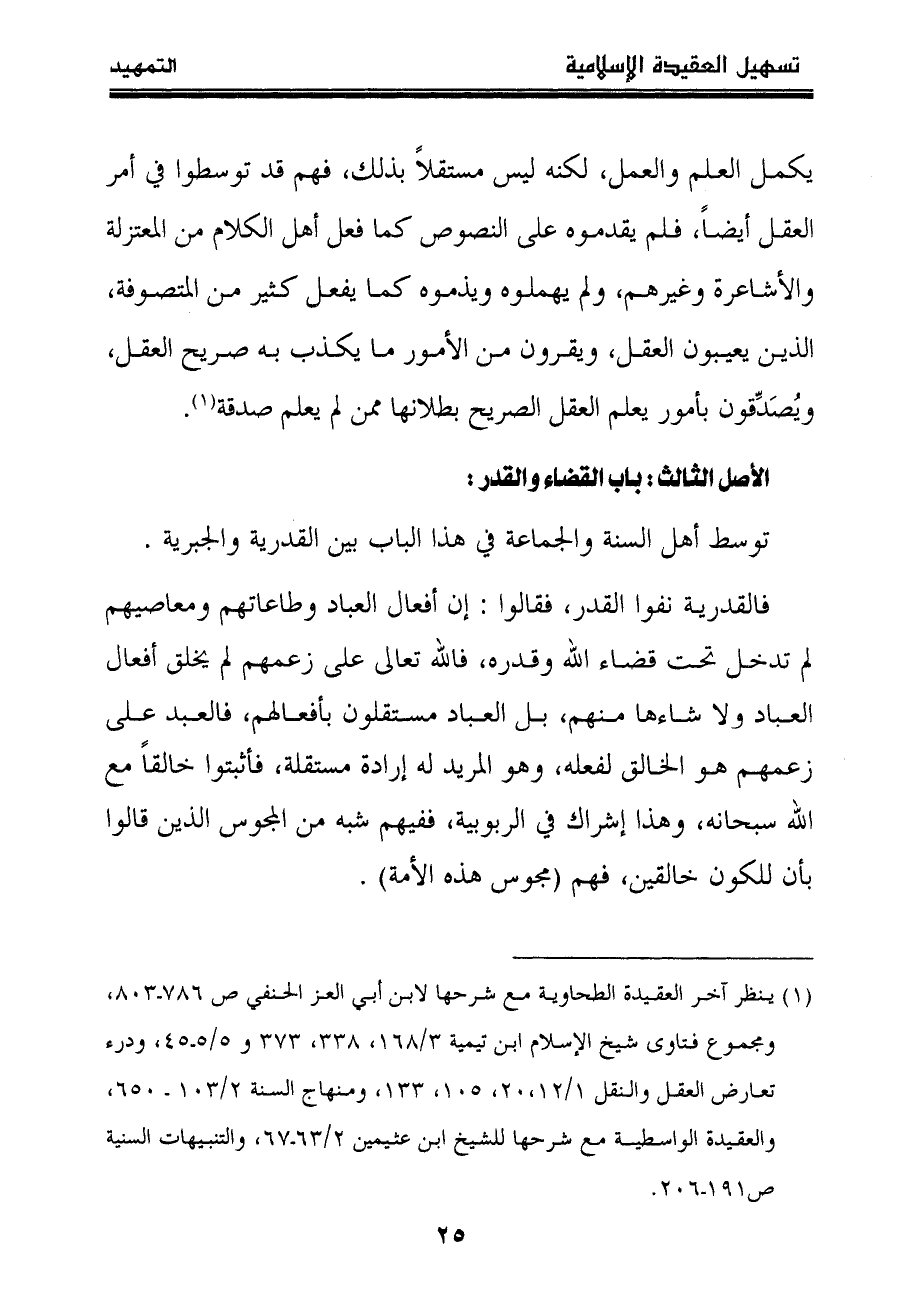 ١- ينظر آخر العقيدة الطحاوية مع شرحها لابن أبي العز الحنفي ص ٧٨٦٨٠٣، ومجموع فتاوى شيخ الإسلام ابن تيمية ٣/١٦٨، ٣٣٨، ٣٧٣ و ٥/٥٤٥، ودرء تعارض العقل والنقل ١/١٢،٢٠، ١٠٥، ١٣٣، ومنهاج السنة ٢/١٠٣ ٦٥٠، والعقيدة الواسطية مع شرحها للشيخ ابن عثيمين ٢/٦٣٦٧، والتنبيهات السنية ص١٩١- ٢٠٦.