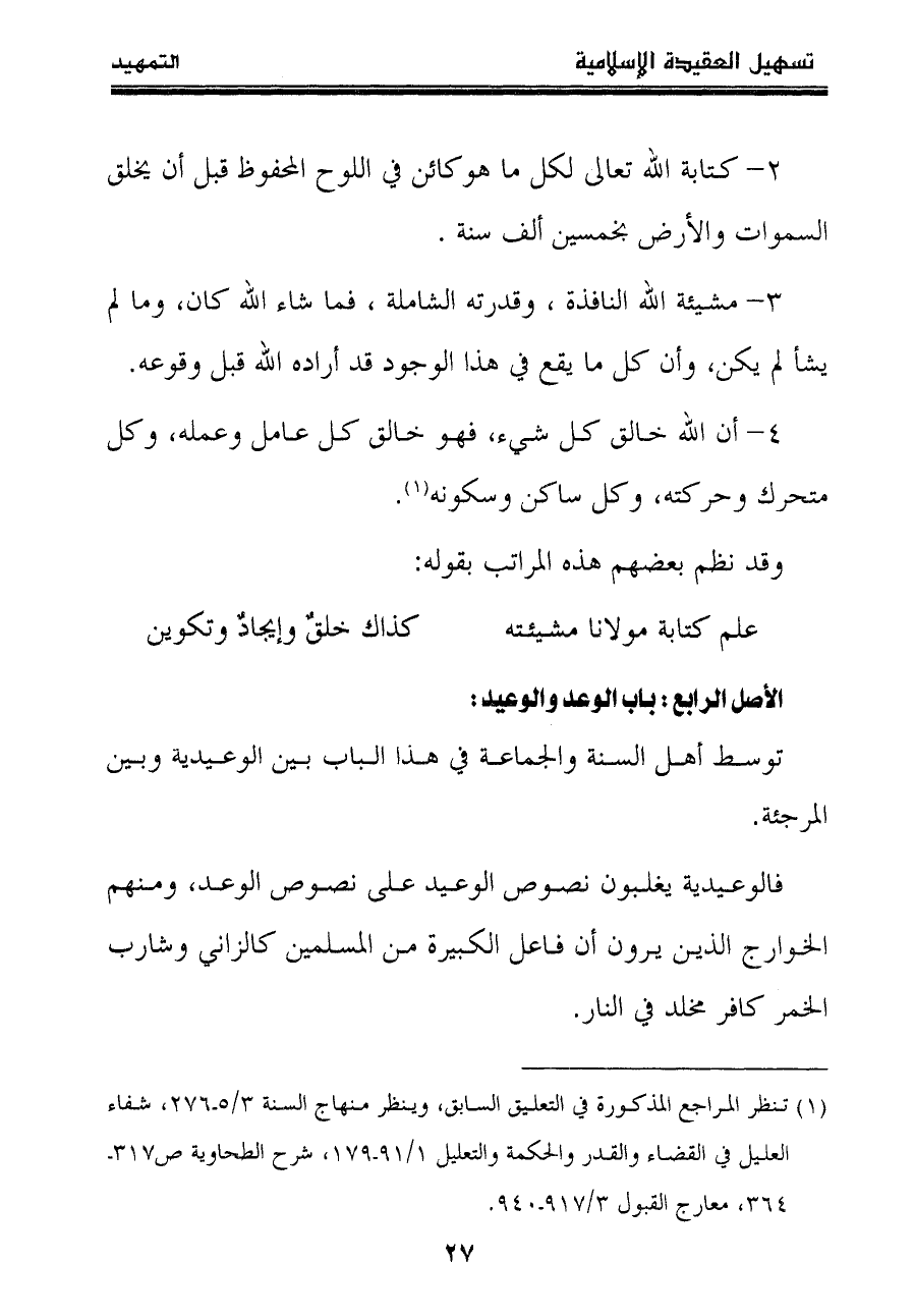 ١- تنظر المراجع المذكورة في التعليق السابق، وينظر منهاج السنة ٣/٥-٢٧٦، شفاء العليل في القضاء والقدر والحكمة والتعليل ١/٩١-١٧٩، شرح الطحاوية ص٣١٧-٣٦٤، معارج القبول ٣/٩١٧-٩٤٠.