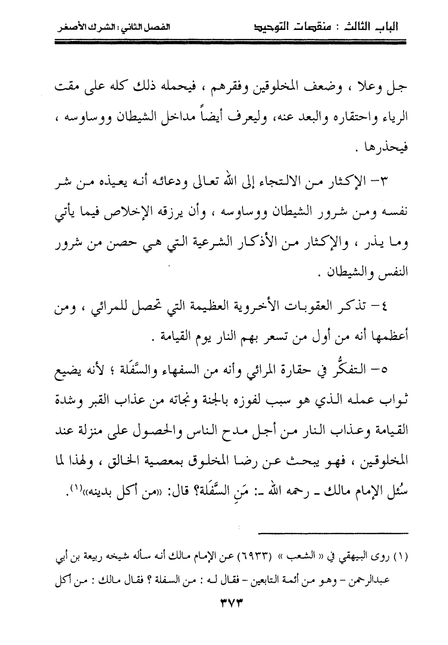 "١" روى البيهقي في "الشعب""٦٩٣٣" عن الإمام مالك أنه سأله شيخه ربيعة بن أبي عبد الرحمن –وهو من أئمة التابعين- فقال له: من السفلة؟ فقال مالك: من أكل