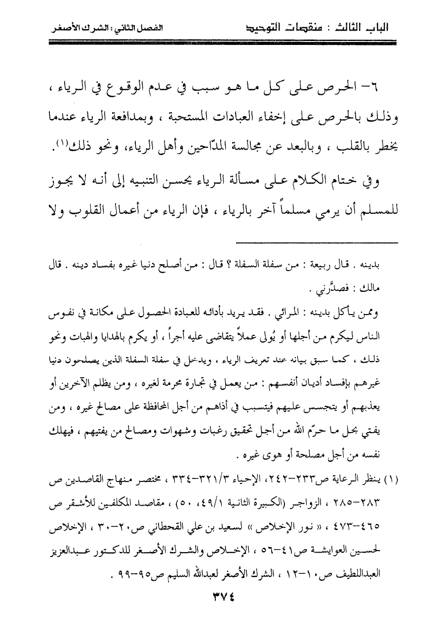 "١" ينظر الرعاية ص٢٣٣-٢٤٢، الإحياء ٣/٣٢١-٣٣٤، مختصر منهاج القاصدين ص٢٨٣-٢٨٥، الزواجر "الكبيرة الثانية ١/٤٩، ٥٠"، مقاصد المكلفين للأشقر ص٤٦٥-٤٧٣، "نور الإخلاص"لسعيد بن علي القحطاني ص٢٠-٣٠، الإخلاص لحسين العوايشة ص٤١-٥٦، الإخلاص والشرك الأصغر للدكتور عبد العزيز العبد اللطيف ص١٠-١٢، الشرك الأصغر لعبد الله السليم ص٩٥-٩٩.