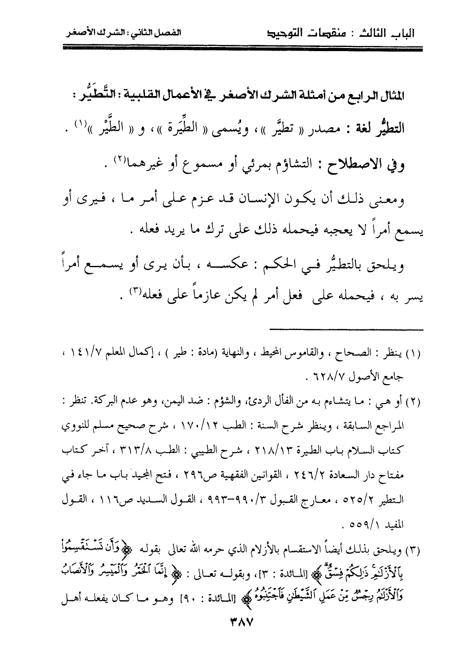 "٢" أو هي: ما يتشاءم به من الفأل الردئ، والشؤم: ضد اليمن، وهو عدم البركة. تنظر: المراجع السابقة، وينظر شرح السنة: الطب ١٢/١٧٠، شرح صحيح مسلم للنووي كتاب السلام باب الطيرة ١٣/٢١٨، شرح الطيبي: الطب ٨/٣١٣، آخر كتاب مفتاح دار السعادة ٢/٢٤٦، القوانين الفقهية ص٢٩٦، فتح المجيد باب ما جاء في التطير ٢/٥٢٥، معارج القبول ٣/٩٩٠-٩٩٣، القول السديد ص١١٦، القول المفيد ١/٥٥٩.