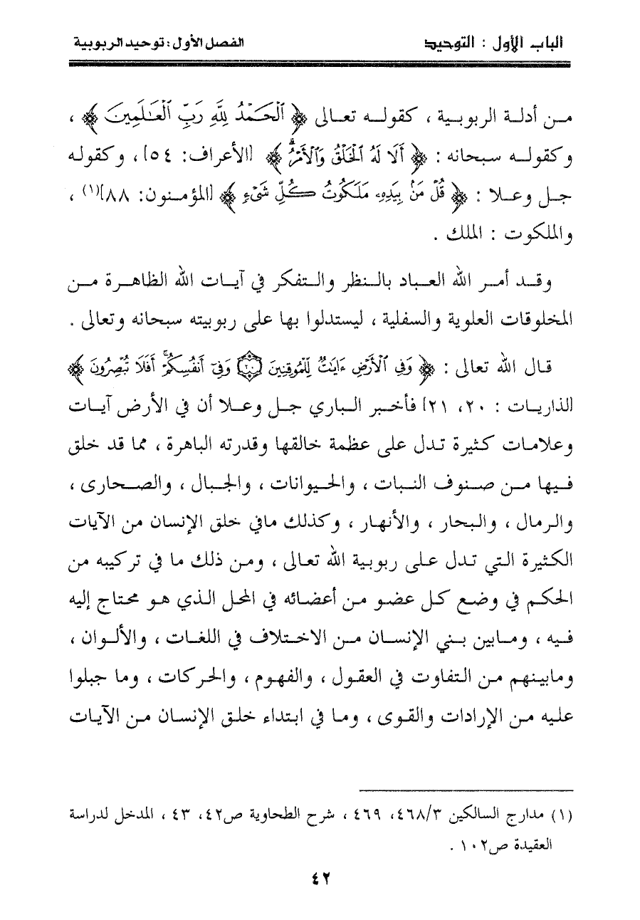 (١) مدارج السالكين ٣/٤٦٨، ٤٦٩، شرح الطحاوية ص٤٢، ٤٣، المدخل لدراسة العقيدة ص١٠٢.