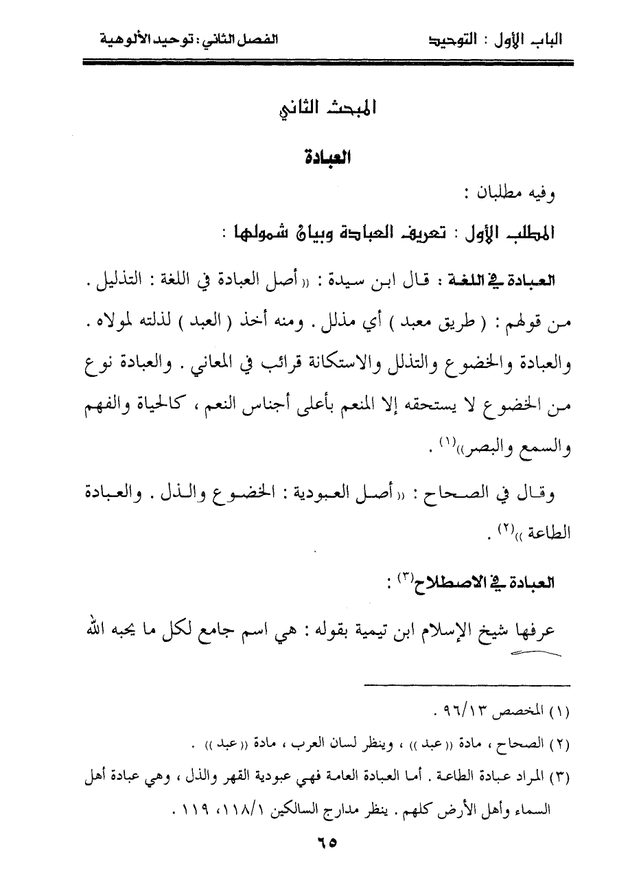 المطلب الأول: تعريف العبادة وبيان شمولها: