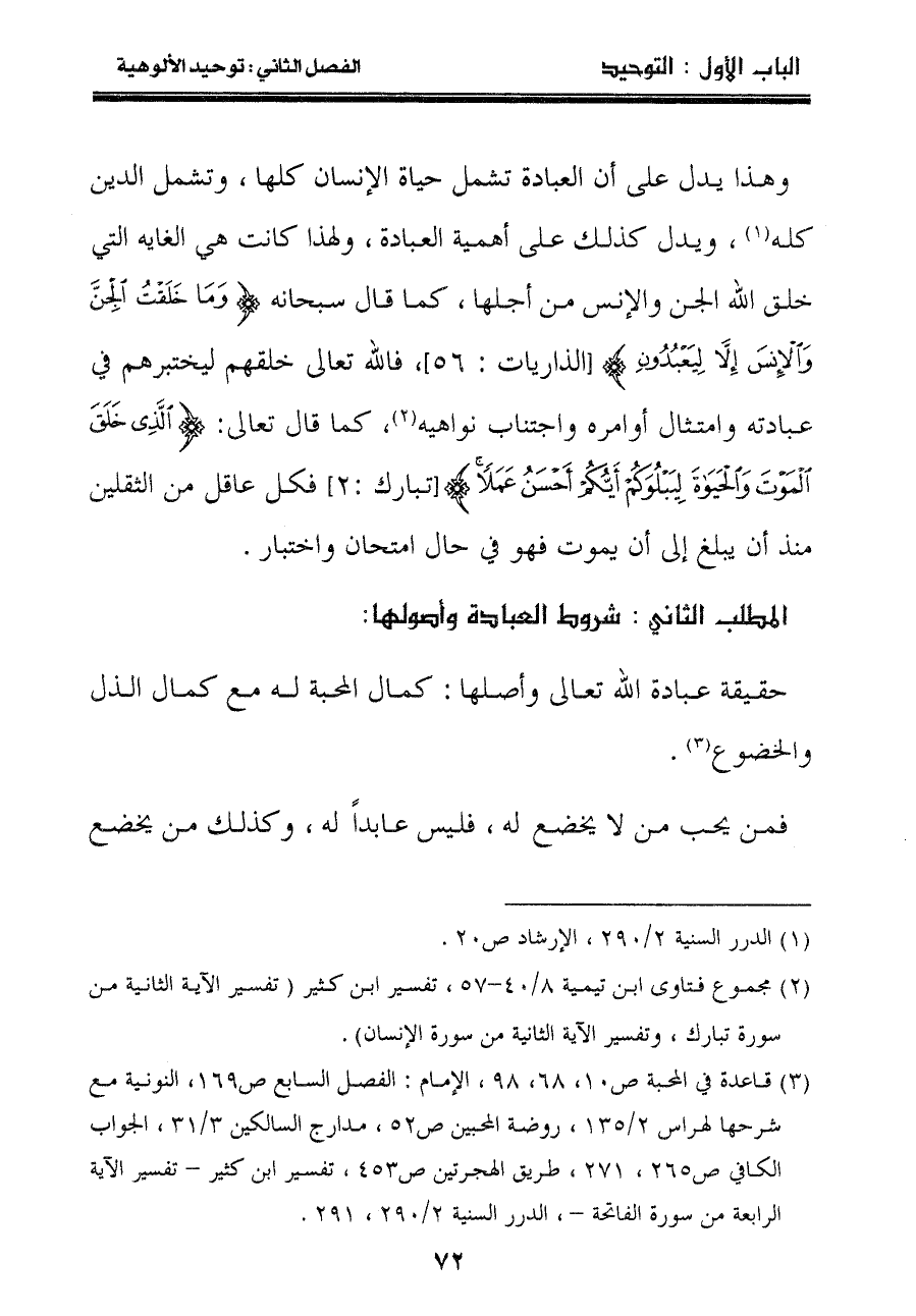 (٣) قاعدة في المحبة ص١٠، ٦٨، ٩٨، الإمام: الفصل السابع ص١٦٩، النونية مع شرحها لهراس ٢/١٣٥، روضة المحبين ص٥٢، مدارج السالكين ٣/٣١، الجواب الكافي ص٢٦٥، ٢٧١، طريق الهجرتين ص٤٥٣، تفسير ابن كثير - تفسير الآية الرابعة من سورة الفاتحة -، الدرر السنية ٢/٢٩٠، ٢٩١.