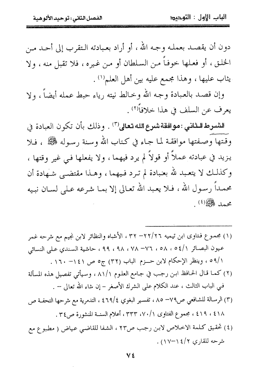(٢) كما قال الحافظ ابن رجب في جامع العلوم ١/٨١، وسيأتي تفصيل هذه المسألة في الباب الثالث، عند الكلام على الشرك الأصغر – إن شاء الله تعالى -.