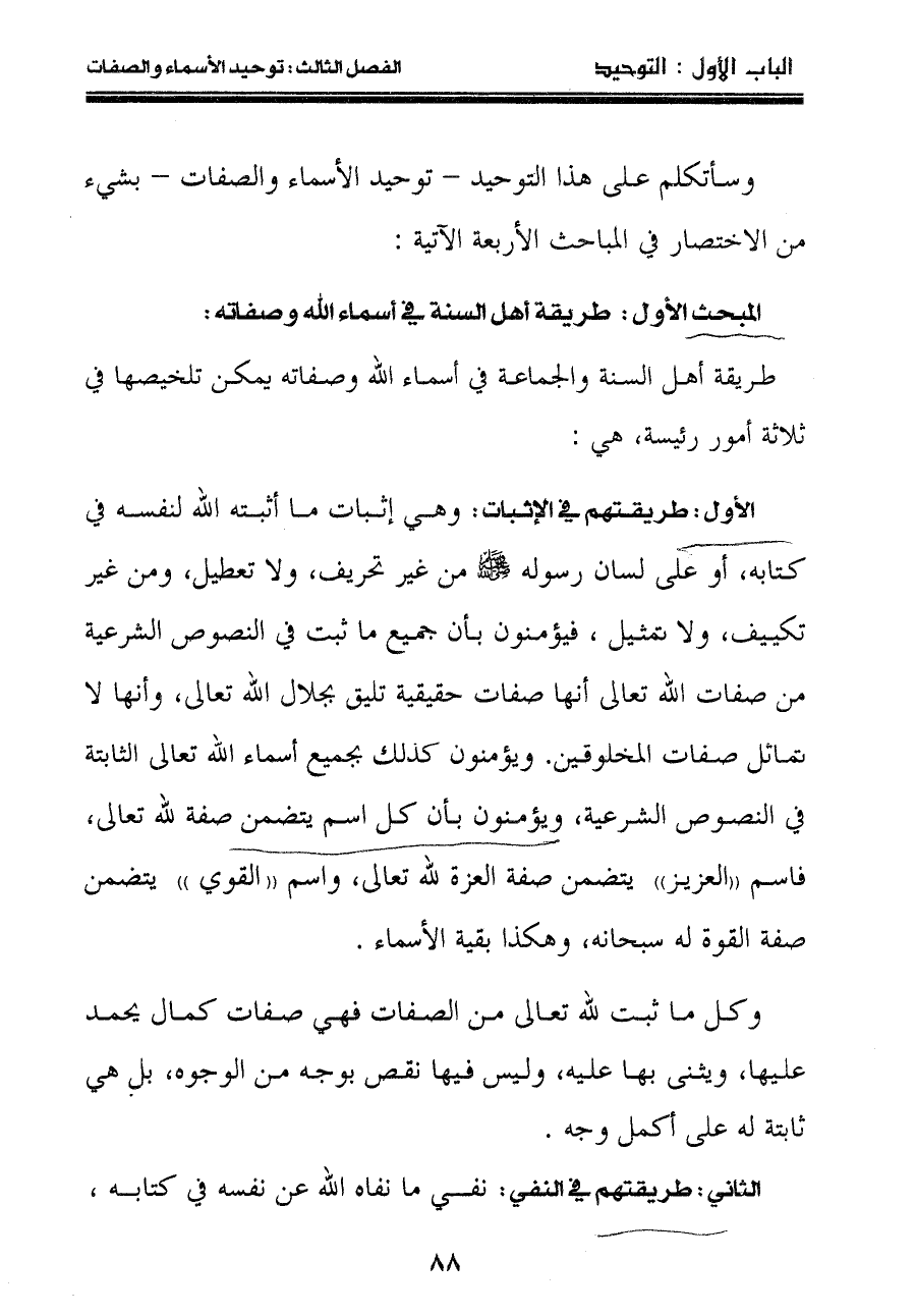 وسأتكلم على هذا التوحيد - توحيد الأسماء والصفات - بشيء من الاختصار في المباحث الأربعة الآتية: