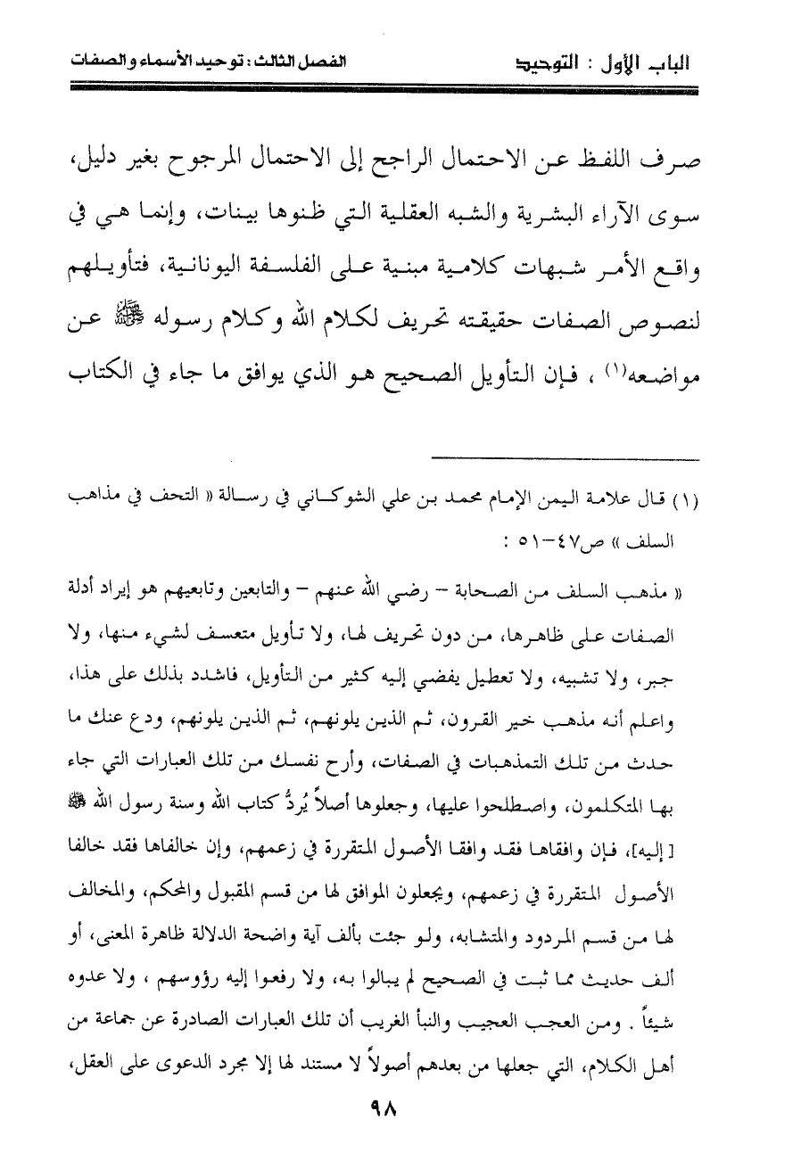"١" قال علامة اليمن الإمام محمد بن علي الشوكاني في رسالة "التحف في مذاهب السلف" ص٤٧-٥١: