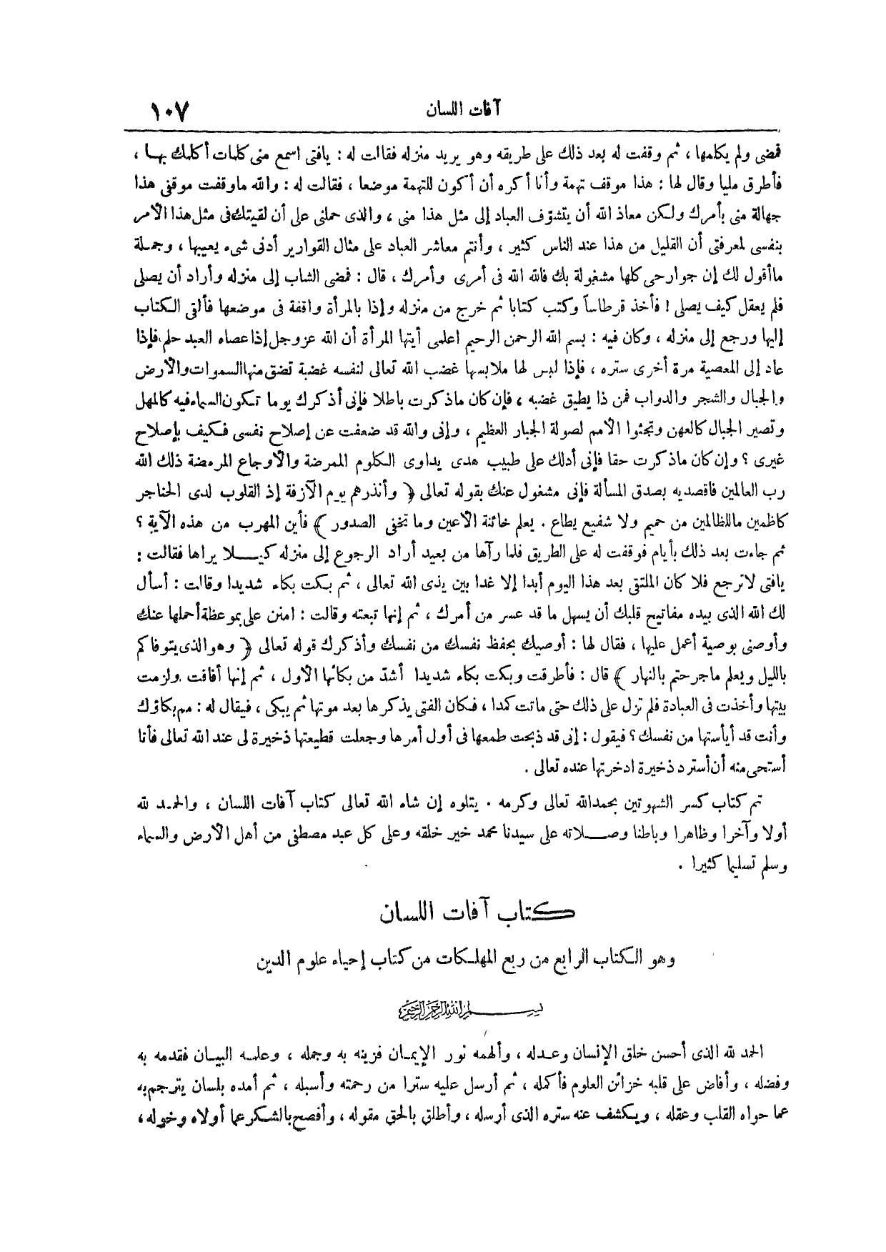 كتاب آفات اللسان وهو الكتاب الرابع من ربع المهلكات من كتاب إحياء