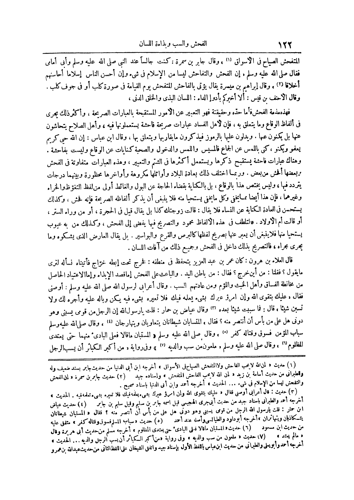 (¬2) حديث جابر بن سمرة إن الفحش والتفحش ليسا من الإسلام في شيء الحديث أخرجه احمد وابن أبي الدنيا بإسناد صحيح