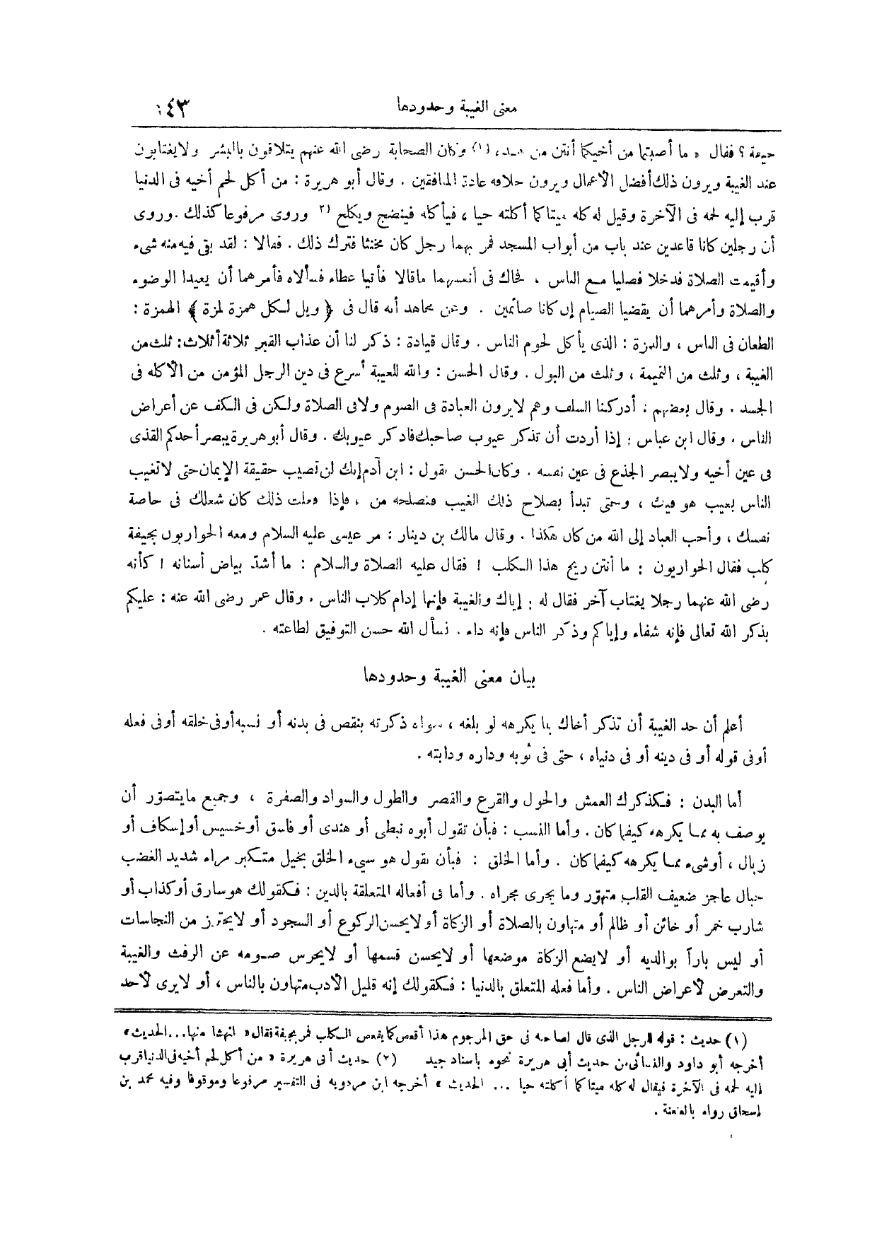 بَيَانُ مَعْنَى الْغِيبَةِ وَحُدُودِهَا