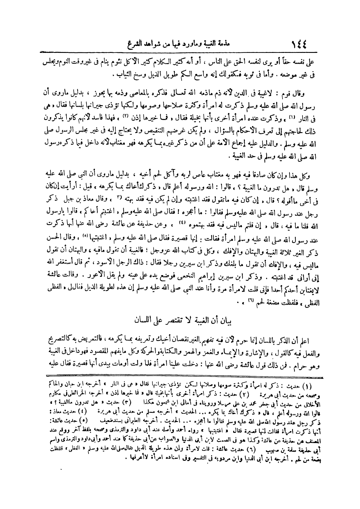 (¬5) وقال الحسن ذكر الغير ثلاثة الغيبة والبهتان والإفك وكل في كتاب الله عز وجل فالغيبة أن تقول ما فيه والبهتان أن تقول ما ليس فيه والإفك أن تقول ما بلغك وذكر ابن سيرين رجلاً فقال ذاك الرجل الأسود ثم قال أستغفر الله إني أراني قد اغتبته