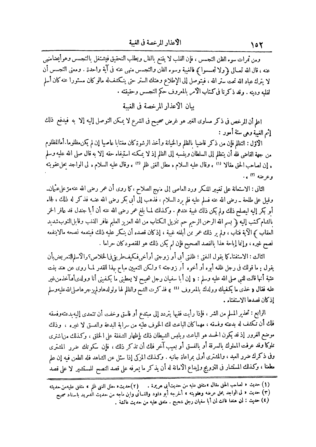 اعلم أن المرخص في ذكر مساوي الغير هو غرض صحيح في الشرع لا يمكن التوصل إليه إلا به فيدفع ذلك إثم الغيبة وهي ستة أمور
