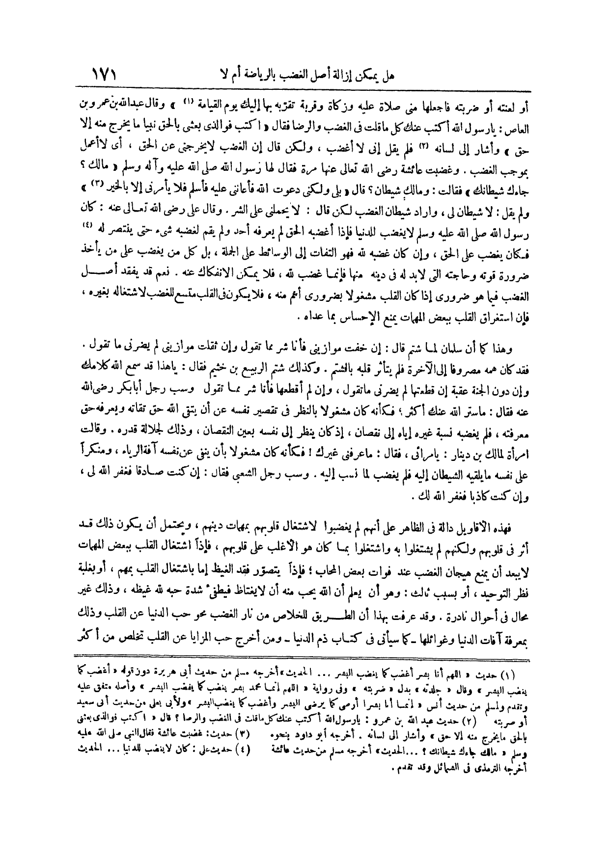 فكان يغضب على الحق وإن كان غضبه لله فهو التفات إلى الوسائط على الجملة بل كل من يغضب على من يأخذ ضرورة قوته وحاجته التي لا بد له في دينه منها فإنما غضب لله فلا يمكن الانفكاك عنه نعم قد يفقد أصل الغضب فيما هو ضروري إذا كان القلب مشغولاً بضروري أهم منه فَلَا يَكُونُ فِي الْقَلْبِ مُتَّسَعٌ لِلْغَضَبِ لِاشْتِغَالِهِ بِغَيْرِهِ فَإِنَّ اسْتِغْرَاقَ الْقَلْبِ بِبَعْضِ الْمُهِمَّاتِ يَمْنَعُ الإحساس بما عداه