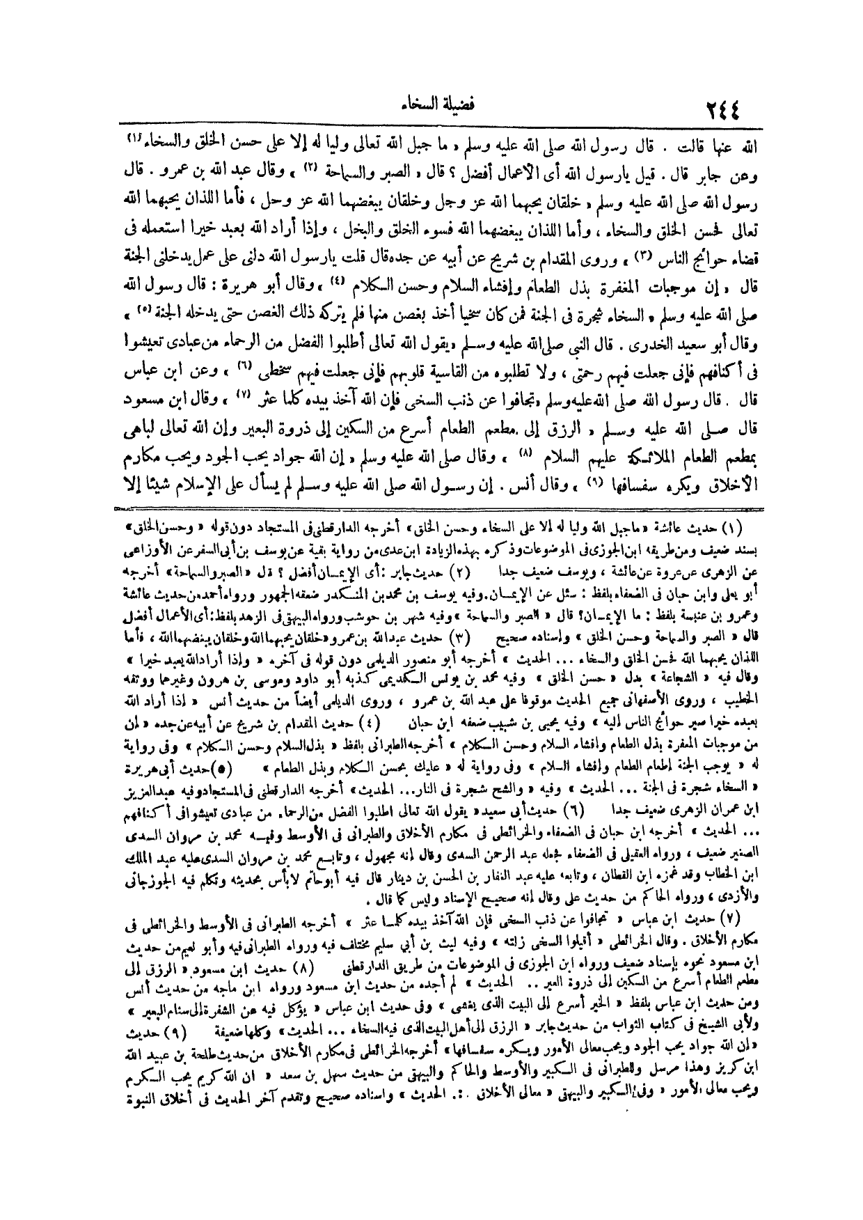 (¬8) وَقَالَ صَلَّى اللَّهُ عَلَيْهِ وَسَلَّمَ إِنَّ اللَّهَ جواد يحب الجود ويحب مكارم الأخلاق ويكره سفسافها