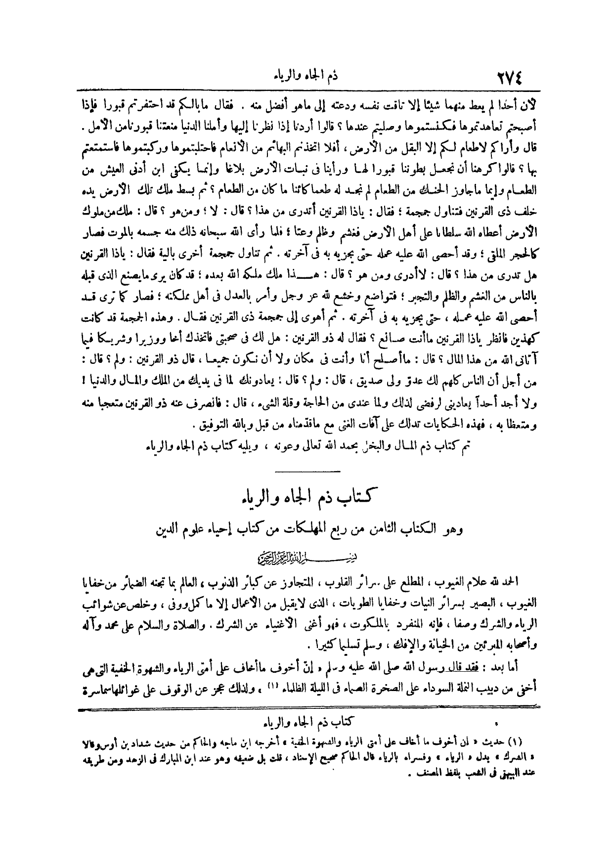 كتاب ذم الجاه والرياء وهو الكتاب الثامن من ربع المهلكات من كتاب إحياء علوم الدين بسم الله الرحمن الرحيم