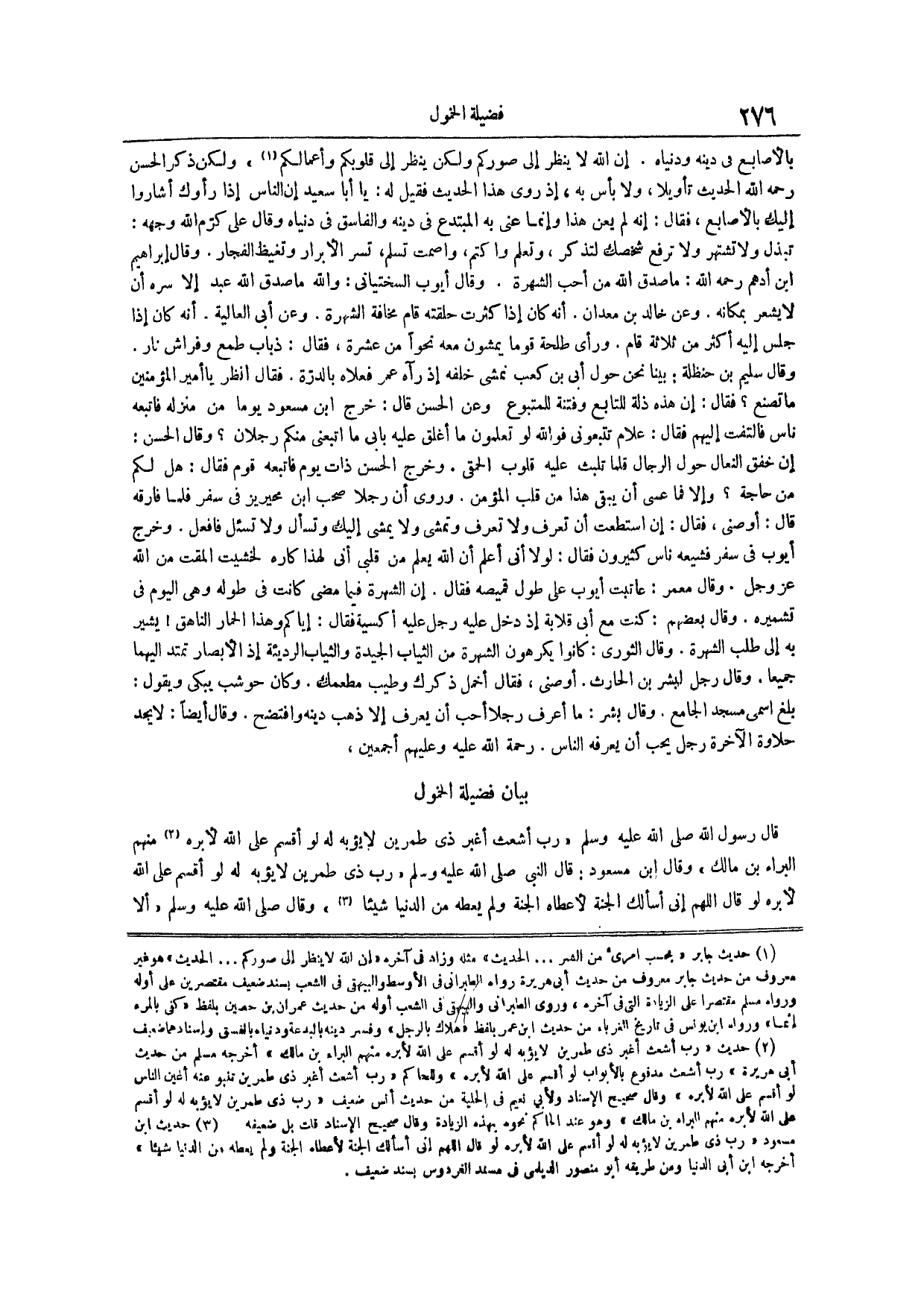 منهم البراء بن مالك وقال ابن مسعود قال النبي صلى الله عليه وسلم رب ذِي طِمْرَيْنِ لَا يُؤْبَهُ لَهُ لَوْ أَقْسَمَ على الله لأبره لو قال اللهم إني أسألك الجنة لأعطاه الجنة ولم يعطه من الدنيا شيئا // حديث ابن مسعود رب ذِي طِمْرَيْنِ لَا يُؤْبَهُ لَهُ لَوْ أَقْسَمَ على الله لأبره لو قال اللهم إني أسألك الجنة لأعطاء الجنة ولم يعطه من الدنيا شيئا أخرجه ابن أبي الدنيا ومن طريقه أبو منصور الديلمي في مسند الفردوس بسند ضعيف