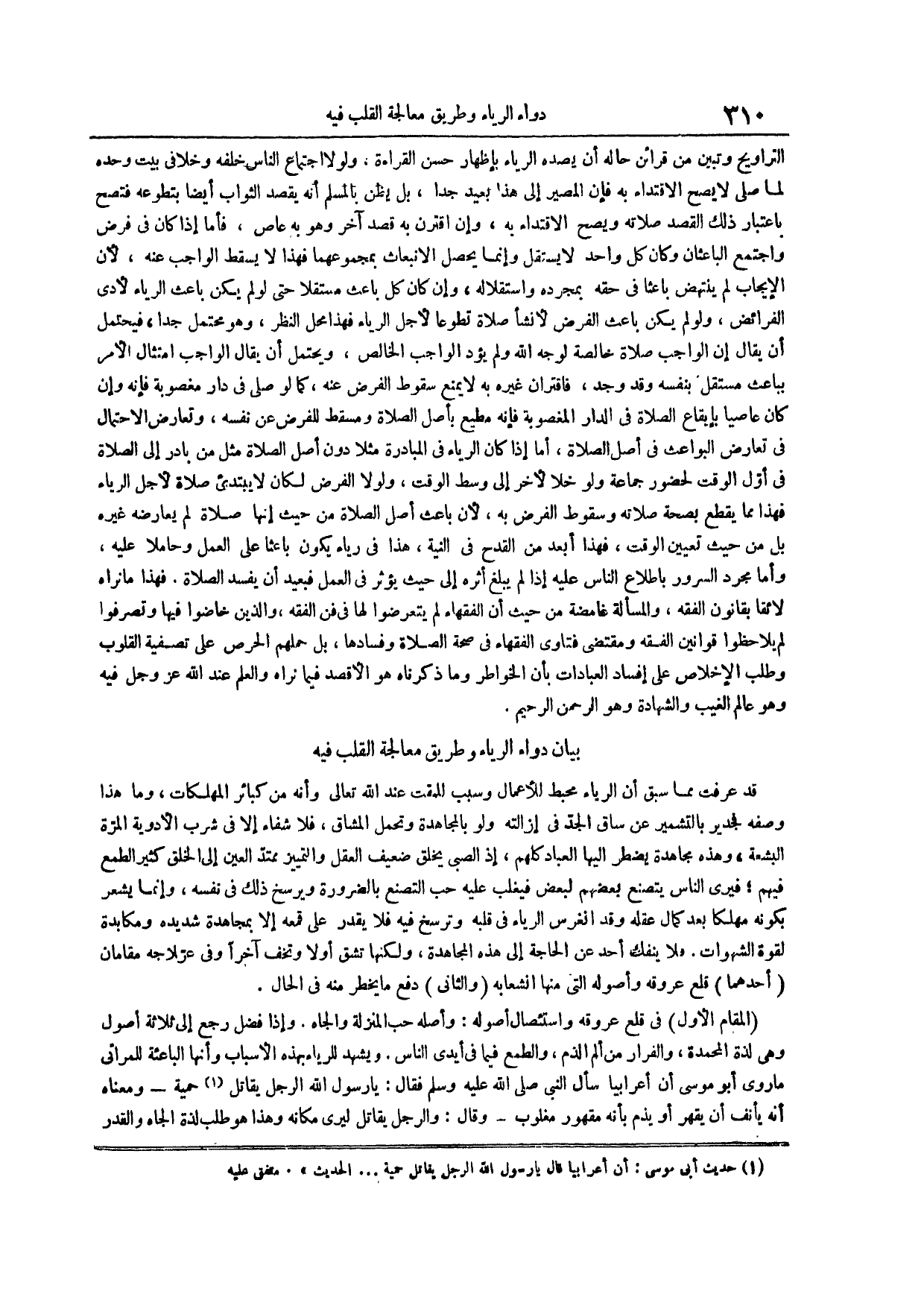 بَيَانُ دَوَاءِ الرِّيَاءِ وَطَرِيقِ مُعَالَجَةِ الْقَلْبِ فِيهِ