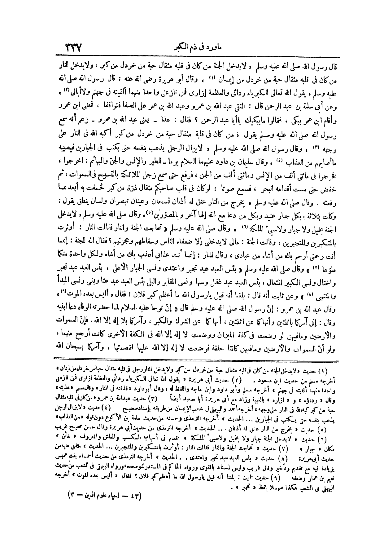 (¬2) حديث عبد الله بن عمرو مَنْ كَانَ فِي قَلْبِهِ مِثْقَالُ حَبَّةٍ مِنْ كبر كبه الله في النار على وجهه أخرجه أحمد والبيهقي في شعب الإيمان من طريقه بإسناد صحيح