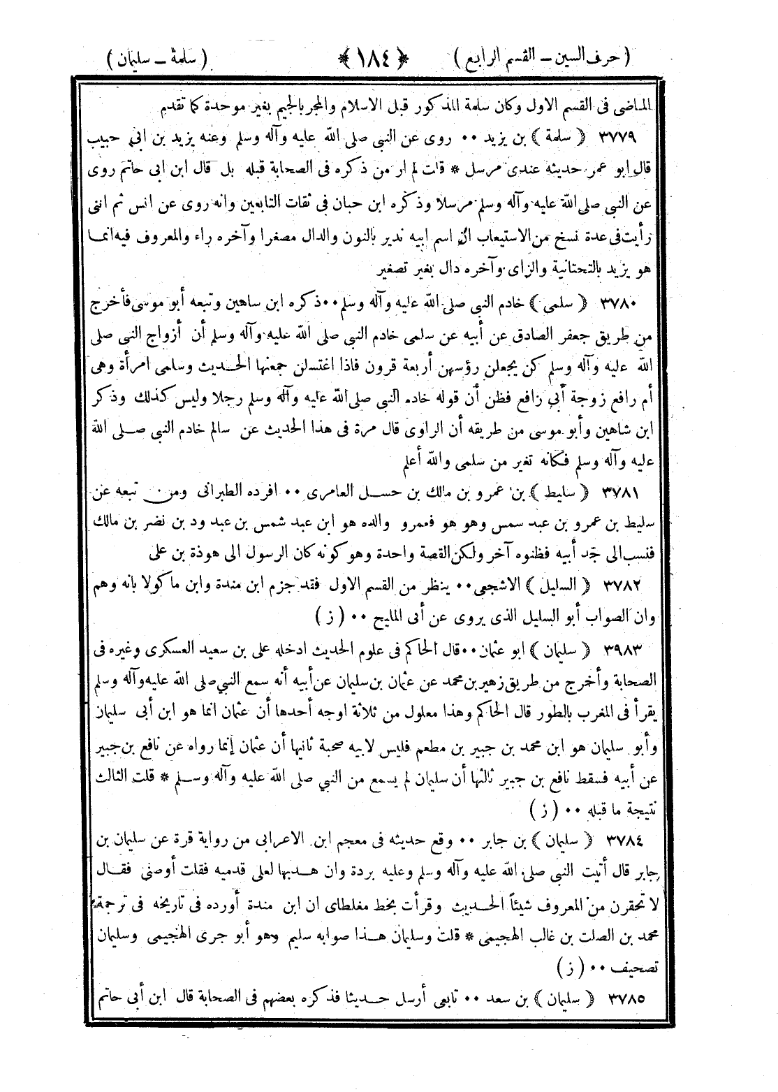 <184> الماضي في القسم الأول وكان سلمة المذكور قبل الإسلام والمجر بالجيم بغير موحدة كما تقدم سلم بن يزيد روى عن النبي صلى الله عليه وسلم وعنه يزيد بن أبي حبيب قال أبو عمر حديثه عندي مرسل قلت لم أر من ذكره في الصحابة قبله بل قال بن أبي حاتم روى عن النبي صلى الله عليه وسلم مرسلا وذكره بن حبان في ثقات التابعين وأنه روى عن أنس ثم انني رأيت في عدة نسخ من الاستيعاب أن اسم أبيه ندير بالنون والذال مصغرا وآخره راء والمعروف فيه إنما هو يزيد بالتحتانية والزاي وآخره دال بغير تصغير سلمى خادم للنبي صلى الله عليه وسلم ذكره بن شاهين وتبعه أبو موسى فأخرج من طريق جعفر الصادق عن أبيه عن سلمى خادم النبي صلى الله عليه وسلم أن أزواج النبي صلى الله عليه وسلم كن يجعلن رءوسهن أربعة قرون فإذا اغتسلن جمعنها الحديث وسلمى امرأة وهي أم رافع زوجة أبي رافع فظن أن قوله خادم النبي صلى الله عليه وسلم رجلا وليس كذلك وذكر بن شاهين وأبو موسى من طريقه أن الراوي قال مرة في هذا الحديث عن سالم خادم النبي صلى الله عليه وسلم فكأنه تغير من سلمى والله أعلم سليط بن عمرو بن مالك بن حسل العامري أفرده الطبراني ومن تبعه عن سليط بن عمرو بن عبد شمس وهو هو فعمرو والده هو بن عبد شمس بن عبد ود بن نصر بن مالك فنسب إلى جد أبيه فظنوه آخر ولكن القصة واحدة وهو كونه كان الرسول إلى هوذة بن علي السليل الأشجعي ينظر من القسم الأول فقد جزم بن منده وابن ماكولا بأنه وهم وأن الصواب أبو السليل الذي يروي عن أبي المليح سليمان أبو عثمان قال الحاكم في علوم الحديث أدخله على بن سعيد العسكري وغيره في الصحابة وأخرج من طريق زهير بن محمد عن عثمان بن سليمان عن أبيه أنه سمع النبي صلى الله عليه وسلم يقرأ في المغرب بالطور قال الحاكم وهذا معلوم من ثلاثة أوجه أحدها أن عثمان إنما هو بن أبي سليمان وأبو سليمان هو بن محمد بن جبير بن مطعم فليس لأبيه صحبة ثانيها أن عثمان إنما رواه عن نافع بن جبير عن أبيه فسقط نافع بن جبير ثالثها أن سليمان لم يسمع من النبي صلى الله عليه وسلم قلت الثالث نتيجة ما قبله سليمان بن جابر وقع حديثه في معجم بن الأعرابي من رواية قرة عن سليمان بن جابر قال أتيت النبي صلى الله عليه وسلم وعليه بردة وإن هدبها لعلي قدميه فقلت أوصني فقال لا تحقرن من المعروف شيئا الحديث وقرأت بخط مغلطاي أن بن منده أورده في تاريخه في ترجمة محمد بن الصلت بن غالب الهجيمي قلت وسليمان هذا صوابه سليم وهو أبو جرى الهجيمي وسليمان تصحيف سليمان بن سعد تابعي أرسل حديثا فذكره بعضهم في الصحابة قال بن أبي حاتم §