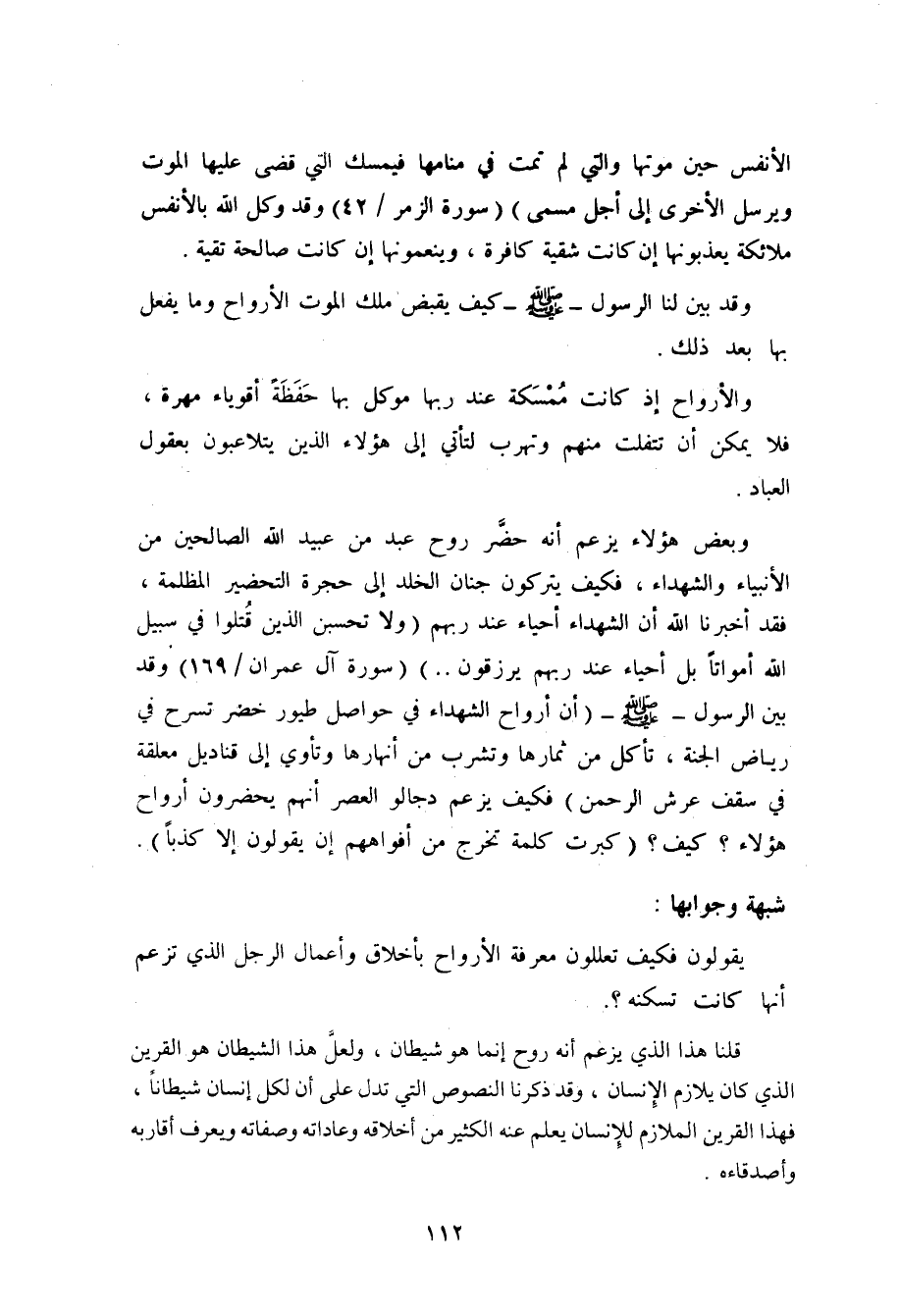 وقد بين الرسول صلى الله عليه وسلم (أن أرواح الشهداء في أجواف طير خضر، لها قناديل معلقة بالعرش، تسرح من الجنة حيث شاءَت، ثمّ تأوي إلى تلك القناديل) . رواه مسلم في صحيحه (¬1) ، فكيف يزعم دجالو العصر أنهم يحضرون أرواح هؤلاء؟ كيف؟ (كبرت كلمةً تخرج من أفواههم إن يقولون إلاَّ كذباً) [الكهف: 5] .