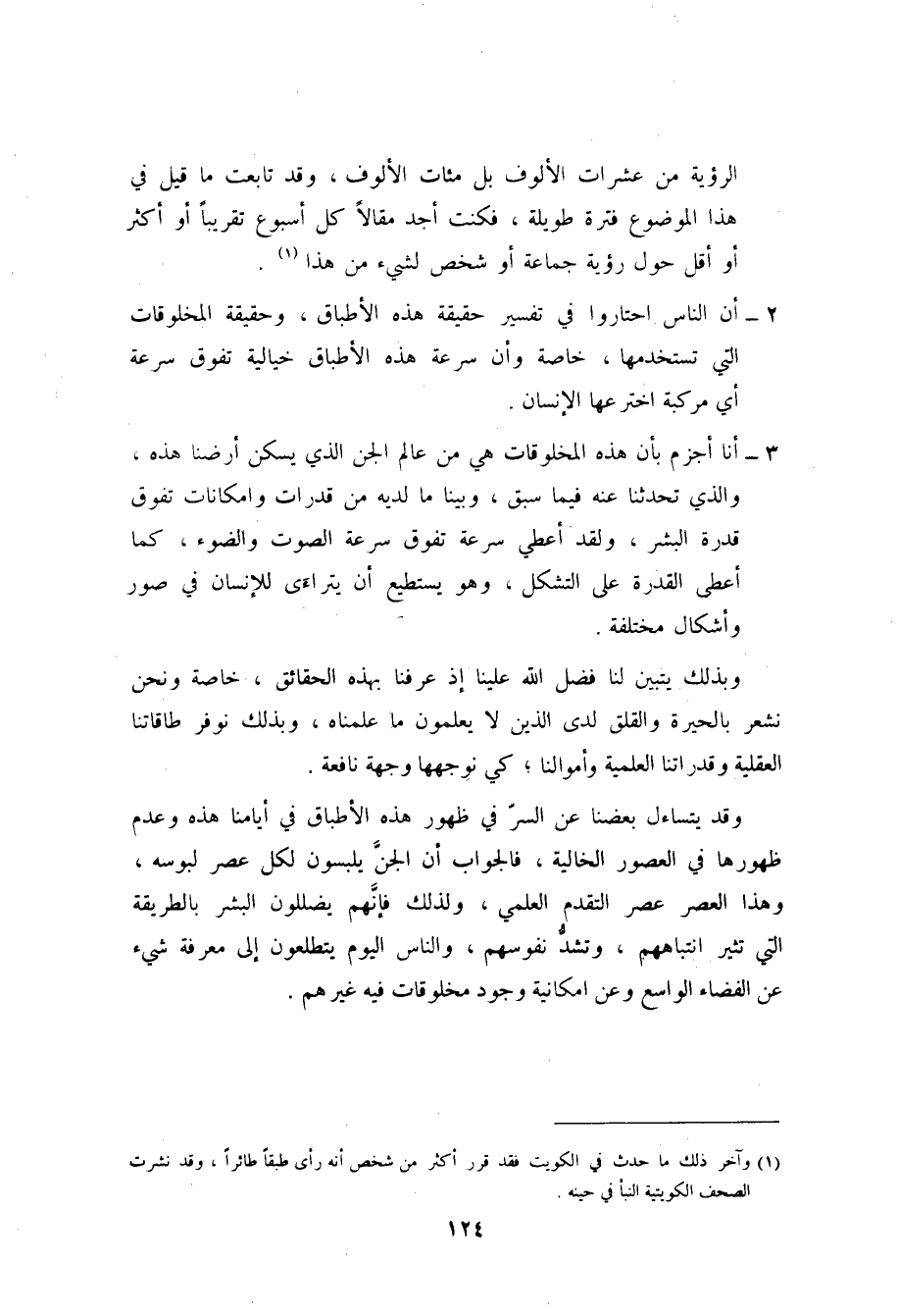 (¬1) وآخر ذلك ما حدث في الكويت، فقد قرر أكثر من شخص أنه رأى طبقاً طائراً، وقد نشرت الصحف الكويتية النبأ في حينه.