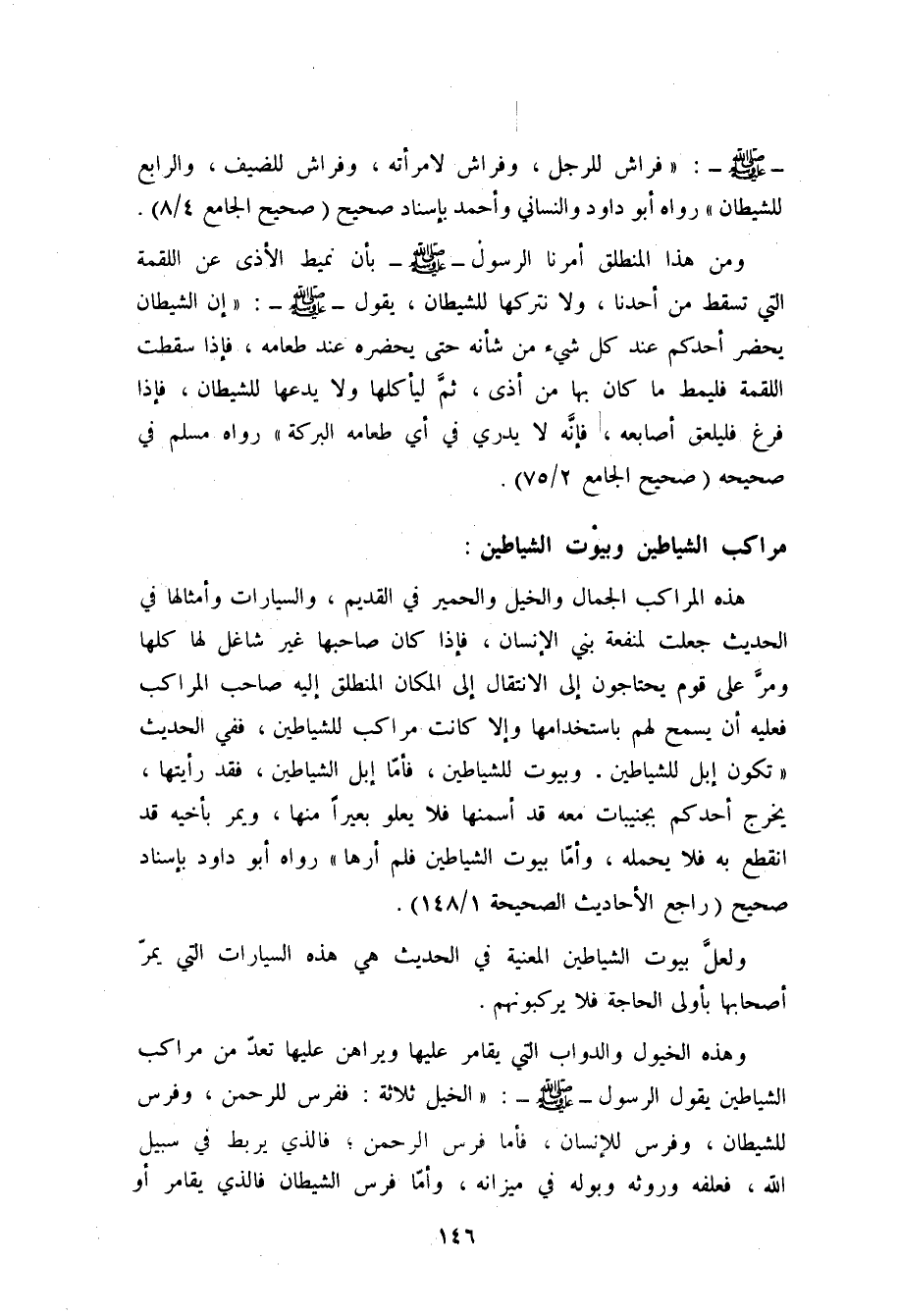 روى مسلم في صحيحه عن جابر بن عبد الله: أن رسول الله صلى الله عليه وسلم ذكر الفرش فقال: (فراش للرجل، وفراش لامرأته، وفراش للضيف، والرابع للشيطان) (¬1) .