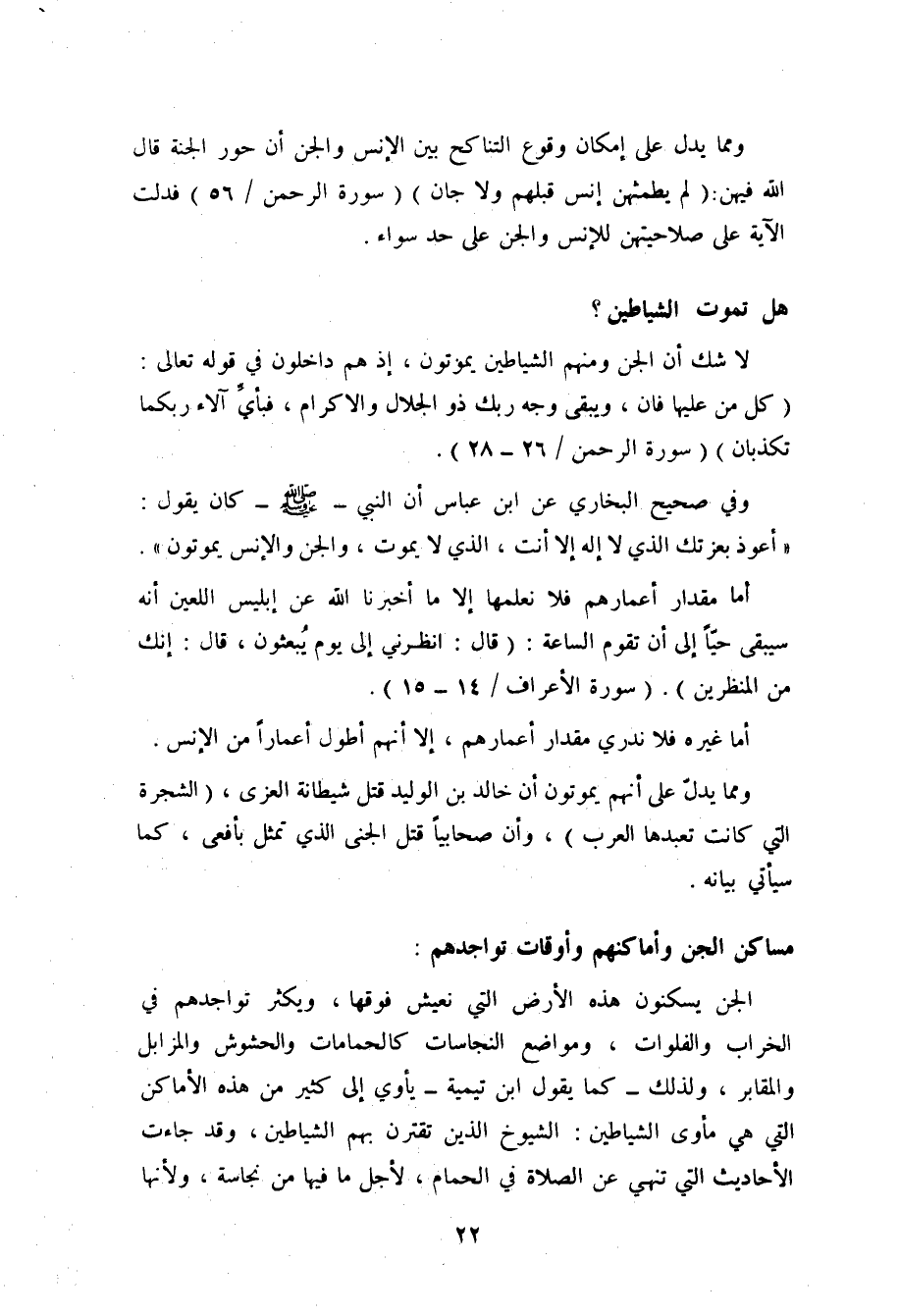ومما يدّل على أنهم يموتون أن خالد بن الوليد قتل شيطانة العزى، (الشجرة التي كانت تعبدها العرب) ، وأن صحابياً قتل الجني الذي تمثل بأفعى، كما سيأتي بيانه.