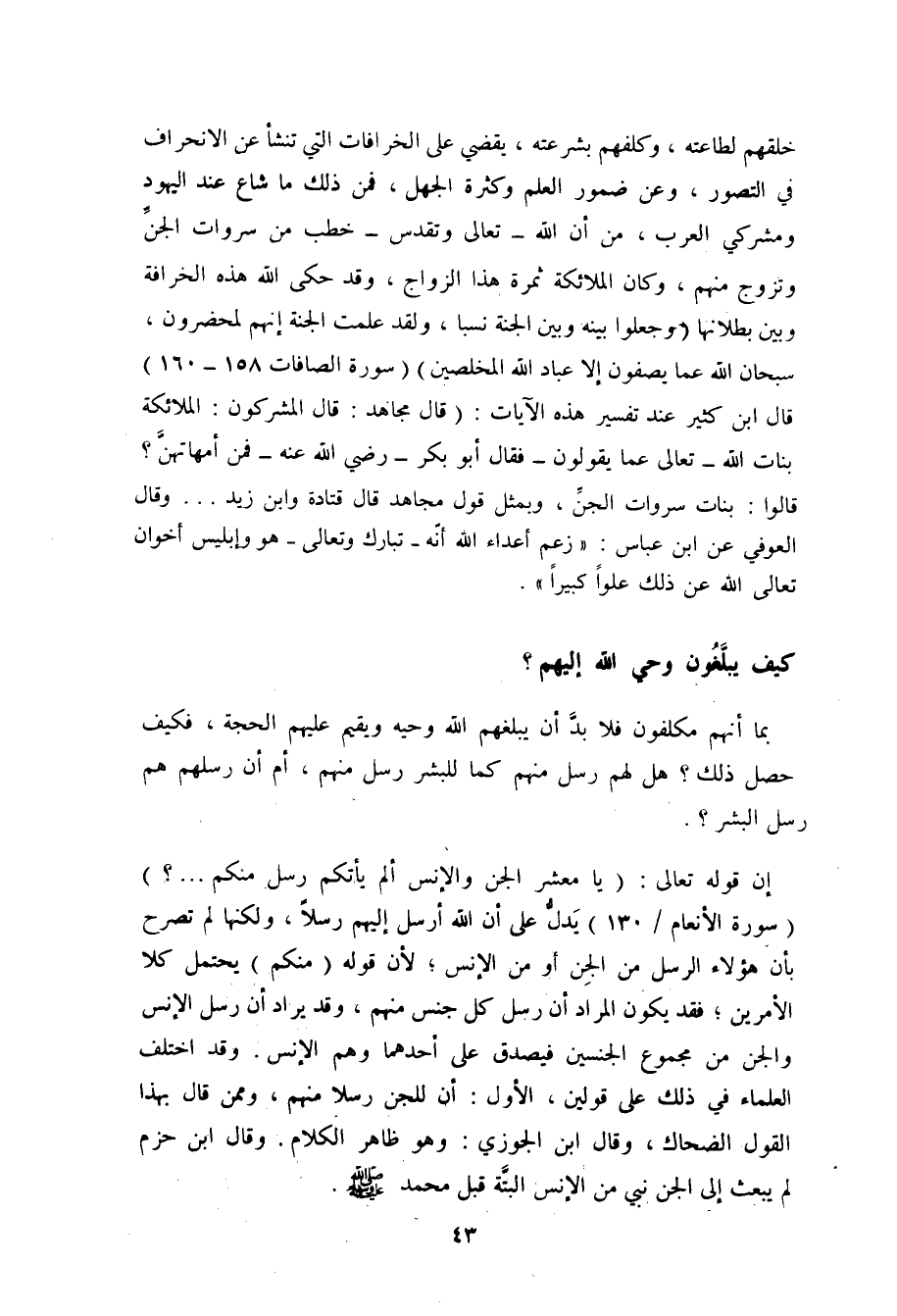 بما أنهم مكلفون فلا بدّ أن يبلغهم الله وحيه، ويقيم عليهم الحجة، فكيف حصل ذلك؟ هل لهم رسل منهم، كما للبشر رسل منهم، أم أن رسلهم هم رسل البشر؟ .