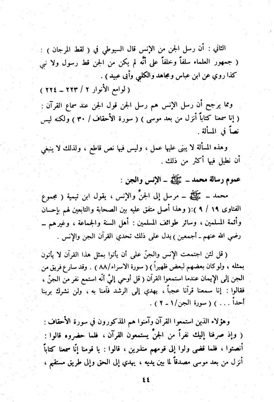 رسولنا محمد صلى الله عليه وسلم مرسل إلى الجنّ والإنس، يقول ابن تيمية (¬2) : " وهذا أصل متفق عليه بين الصحابة والتابعين لهم بإحسان وأئمة المسلمين، وسائر طوائف المسلمين: أهل السنة والجماعة، وغيرهم.