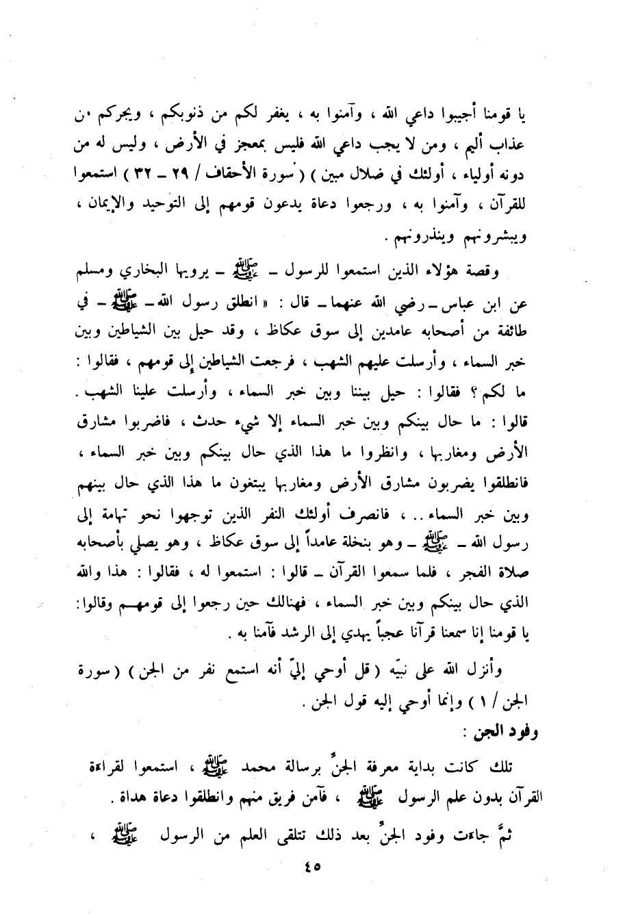 وقصة هؤلاء الذين استمعوا للرسول صلى الله عليه وسلم يرويها البخاري ومسلم عن ابن عباس - رضي الله عنهما - قال: " انطلق النبي صلى الله عليه وسلم في طائفة من أصحابه عامدين إلى سوق عكاظ، وقد حيل بين الشياطين وبين خبر السماء، وأرسلت عليهم الشهب، فرجعت الشياطين إلى قومهم، فقالوا: ما لكم؟ فقالوا: حيل بيننا وبين خبر السماء، وأرسلت علينا الشهب، قالوا: ما حال بينكم وبين خبر السماء إلا شيء حدث، فاضربوا مشارق الأرض ومغاربها، وانظروا ما هذا الذي حال بينكم وبين خبر السماء.