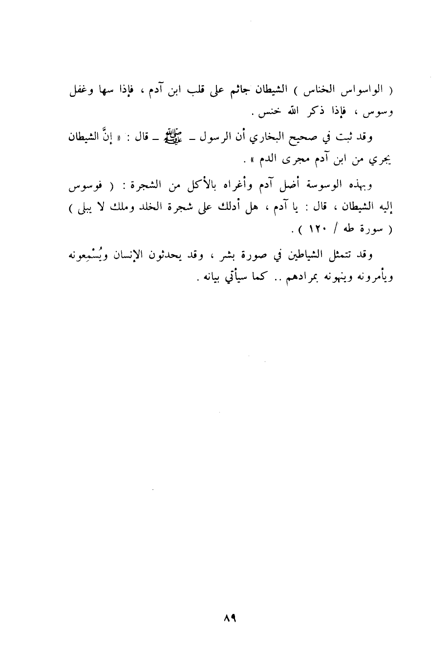 وقد ثبت في الصحيحين عن أنس أن الرسول صلى الله عليه وسلم قال: (إن الشيطان يجري من ابن آدم مجرى الدم) (¬1) .