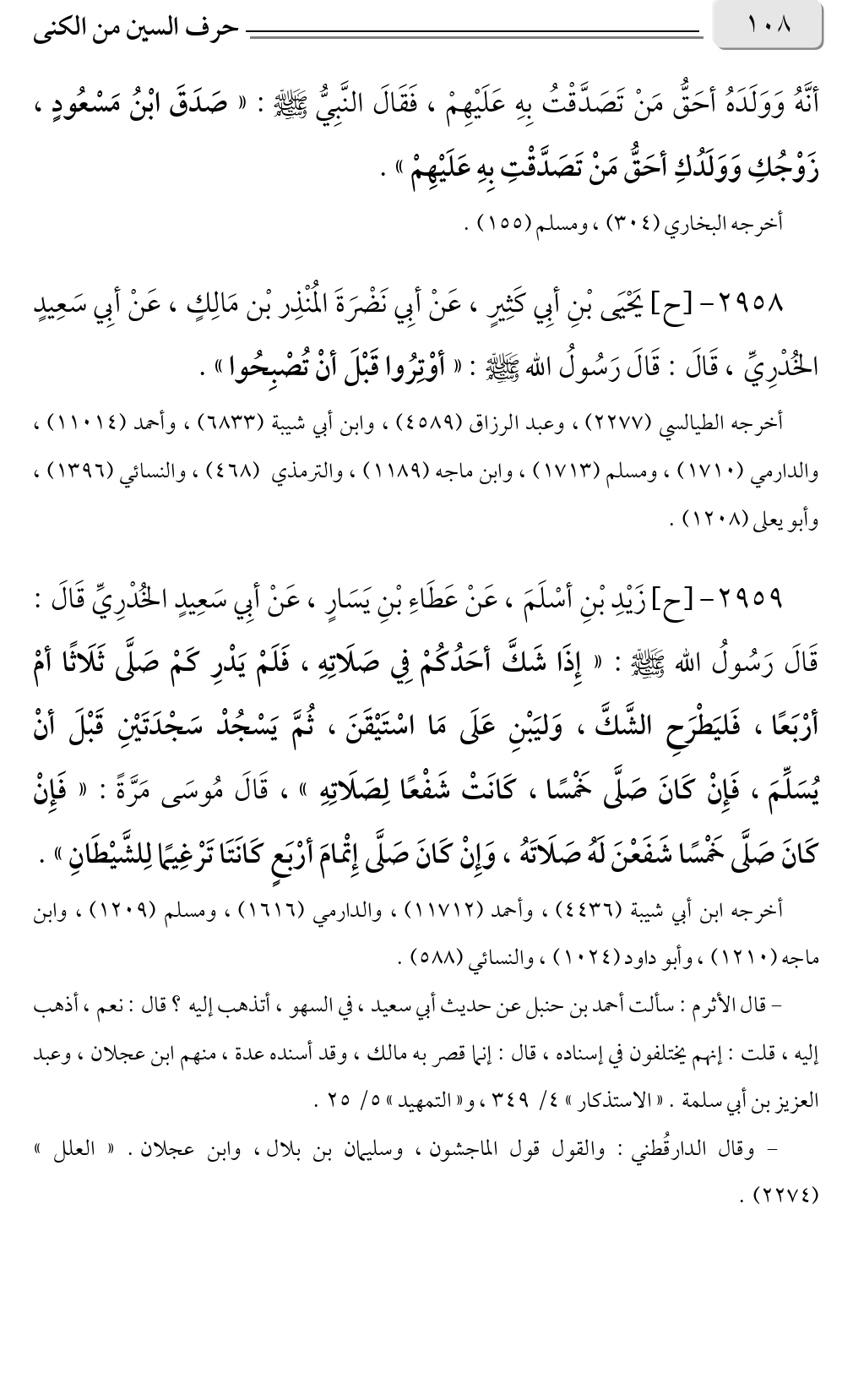 ٢٩٥٨ - [ح] يَحْيَى بْنِ أبِي كَثِيرٍ، عَنْ أبِي نَضْرَةَ المُنْذِر بْن مَالِكٍ، عَنْ أبِي سَعِيدٍ الخُدْرِيِّ، قَالَ: قَالَ رَسُولُ الله صلى الله عليه وسلم: «أوْتِرُوا قَبْلَ أنْ تُصْبِحُوا».