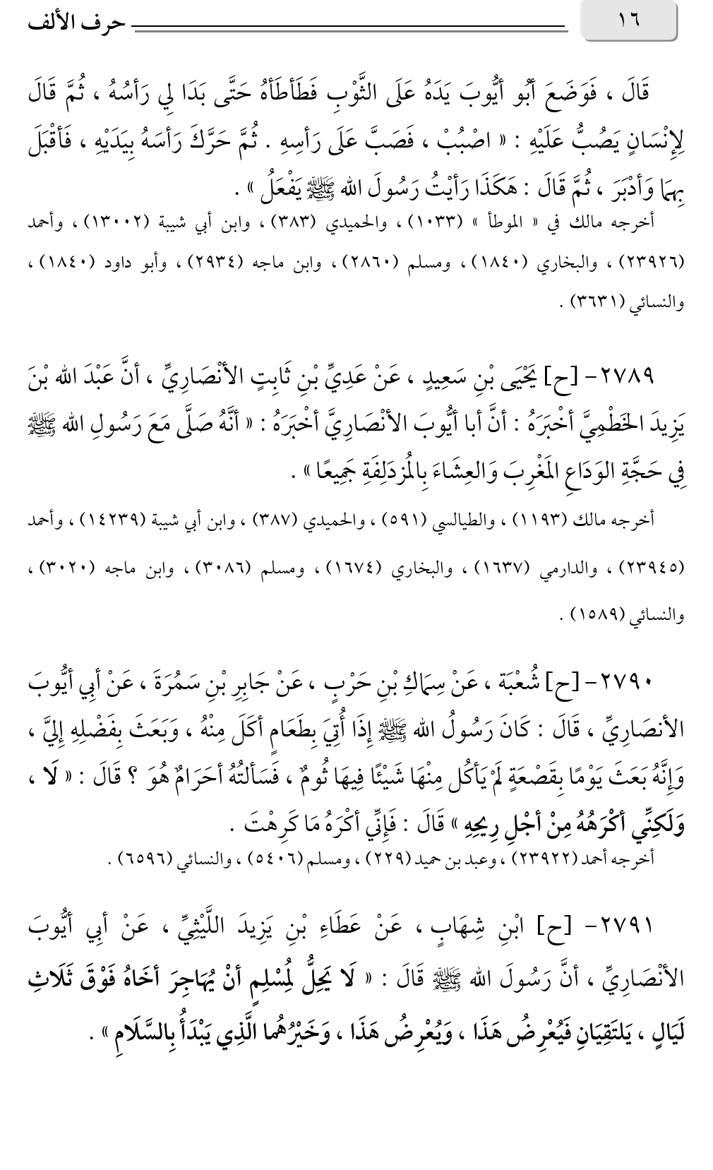 ٢٧٩١ - [ح] ابْنِ شِهَابٍ، عَنْ عَطَاءِ بْنِ يَزِيدَ اللَّيْثِيِّ، عَنْ أبِي أيُّوبَ الأنْصَارِيِّ، أنَّ رَسُولَ الله صلى الله عليه وسلم قَالَ: «لَا يَحِلُّ لِمُسْلِمٍ أنْ يُهَاجِرَ أخَاهُ فَوْقَ ثَلَاثِ لَيَالٍ، يَلتَقِيَانِ فَيُعْرِضُ هَذَا، وَيُعْرِضُ هَذَا، وَخَيْرُهُما الَّذِي يَبْدَأُ بِالسَّلَامِ».