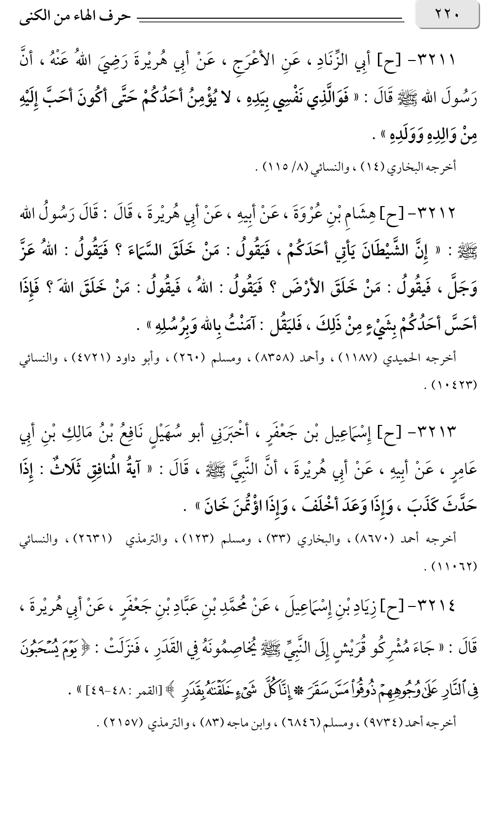 ٣٢١١ - [ح] أبِي الزِّنَادِ، عَنِ الأعْرَجِ، عَنْ أبِي هُريْرةَ رَضِيَ اللهُ عَنْهُ، أنَّ رَسُولَ الله صلى الله عليه وسلم قَالَ: «فَوَالَّذِي نَفْسِي بِيَدِهِ، لا يُؤْمِنُ أحَدُكُمْ حَتَّى أكُونَ أحَبَّ إِلَيْهِ مِنْ وَالِدِهِ وَوَلَدِهِ».