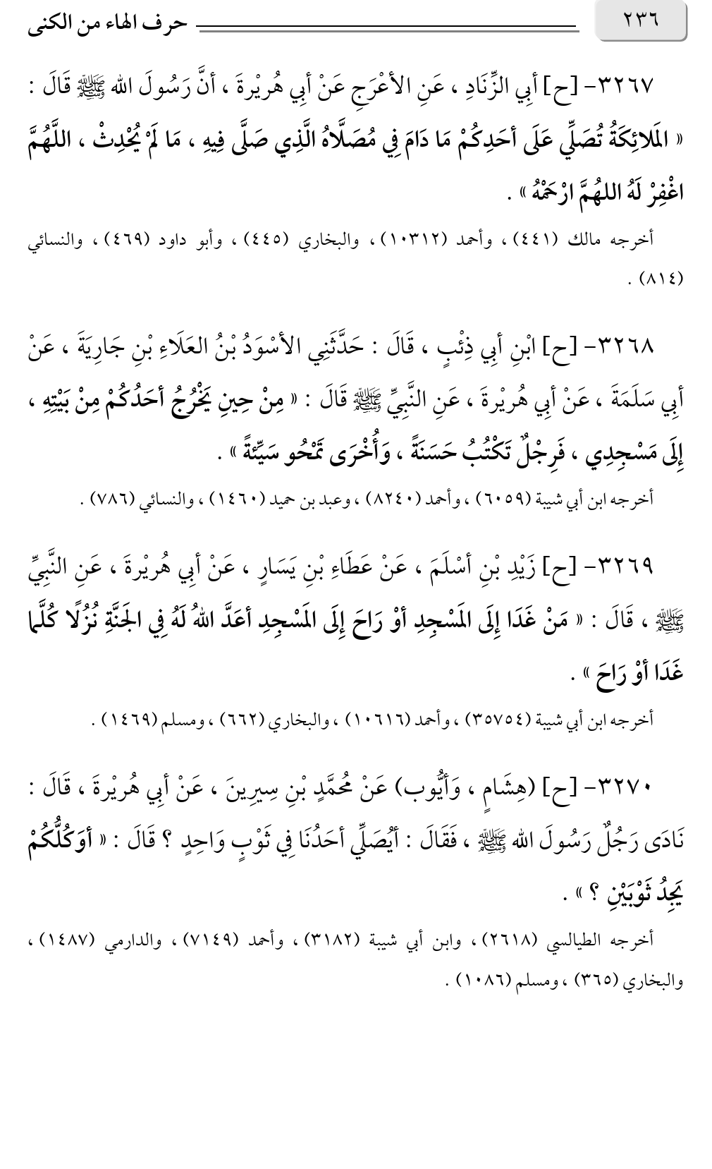 ٣٢٦٩ - [ح] زَيْدِ بْنِ أسْلَمَ، عَنْ عَطَاءِ بْنِ يَسَارٍ، عَنْ أبِي هُريْرةَ، عَنِ النَّبِيِّ صلى الله عليه وسلم، قَالَ: «مَنْ غَدَا إِلَى المَسْجِدِ أوْ رَاحَ إِلَى المَسْجِدِ أعَدَّ اللهُ لَهُ فِي الجَنَّةِ نُزُلًا كُلَّما غَدَا أوْ رَاحَ».