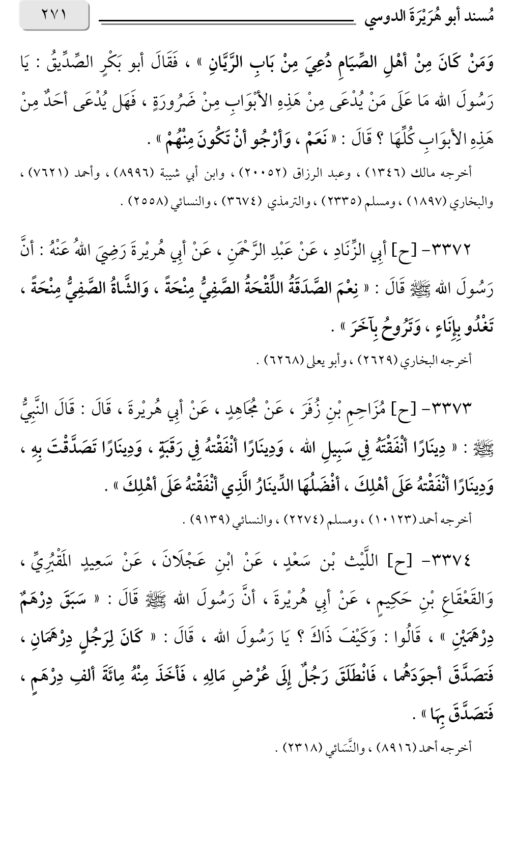 أخرجه مالك (١٣٤٦)، وعبد الرزاق (٢٠٠٥٢)، وابن أبي شيبة (٨٩٩٦)، وأحمد (٧٦٢١)، والبخاري (١٨٩٧)، ومسلم (٢٣٣٥)، والترمذي (٣٦٧٤)، والنسائي (٢٥٥٨).
