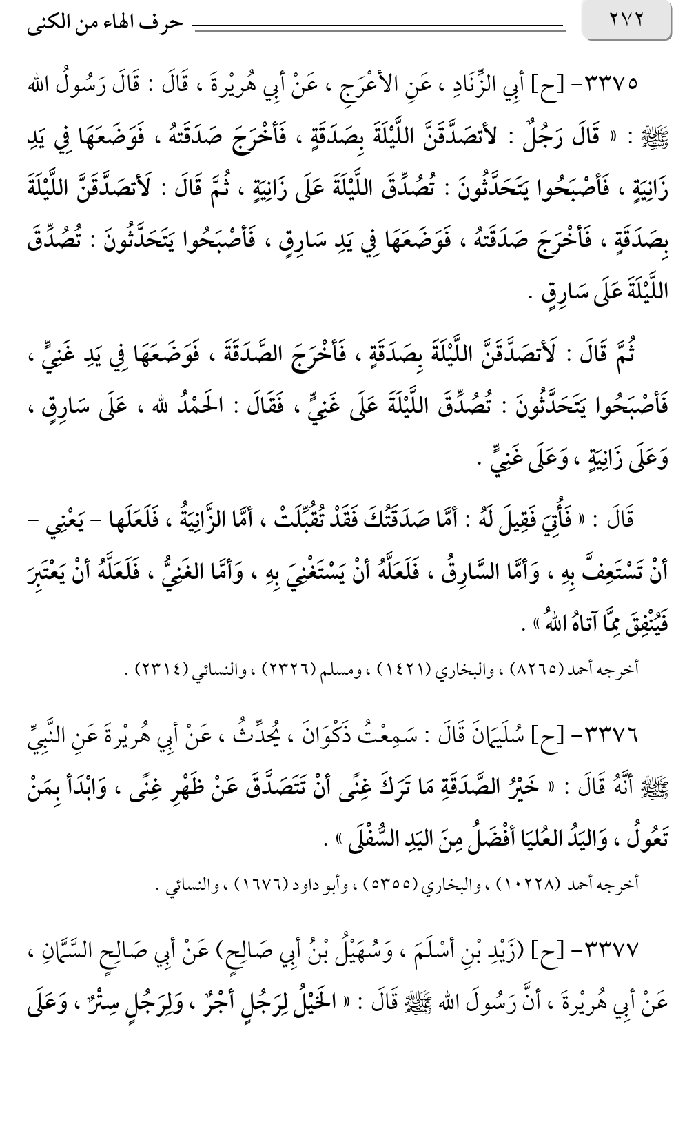 ٣٣٧٥ - [ح] أبِي الزِّنَادِ، عَنِ الأعْرَجِ، عَنْ أبِي هُريْرةَ، قَالَ: قَالَ رَسُولُ الله صلى الله عليه وسلم: «قَالَ رَجُلٌ: لأتصَدَّقَنَّ اللَّيْلَةَ بِصَدَقَةٍ، فَأخْرَجَ صَدَقَتهُ، فَوَضَعَهَا فِي يَدِ زَانِيَةٍ، فَأصْبَحُوا يَتَحَدَّثُونَ: تُصُدِّقَ اللَّيْلَةَ عَلَى زَانِيَةٍ، ثُمَّ قَالَ: لَأتصَدَّقَنَّ اللَّيْلَةَ بِصَدَقَةٍ، فَأخْرَجَ صَدَقَتهُ، فَوَضَعَهَا فِي يَدِ سَارِقٍ، فَأصْبَحُوا يَتَحَدَّثُونَ: تُصُدِّقَ اللَّيْلَةَ عَلَى سَارِقٍ.