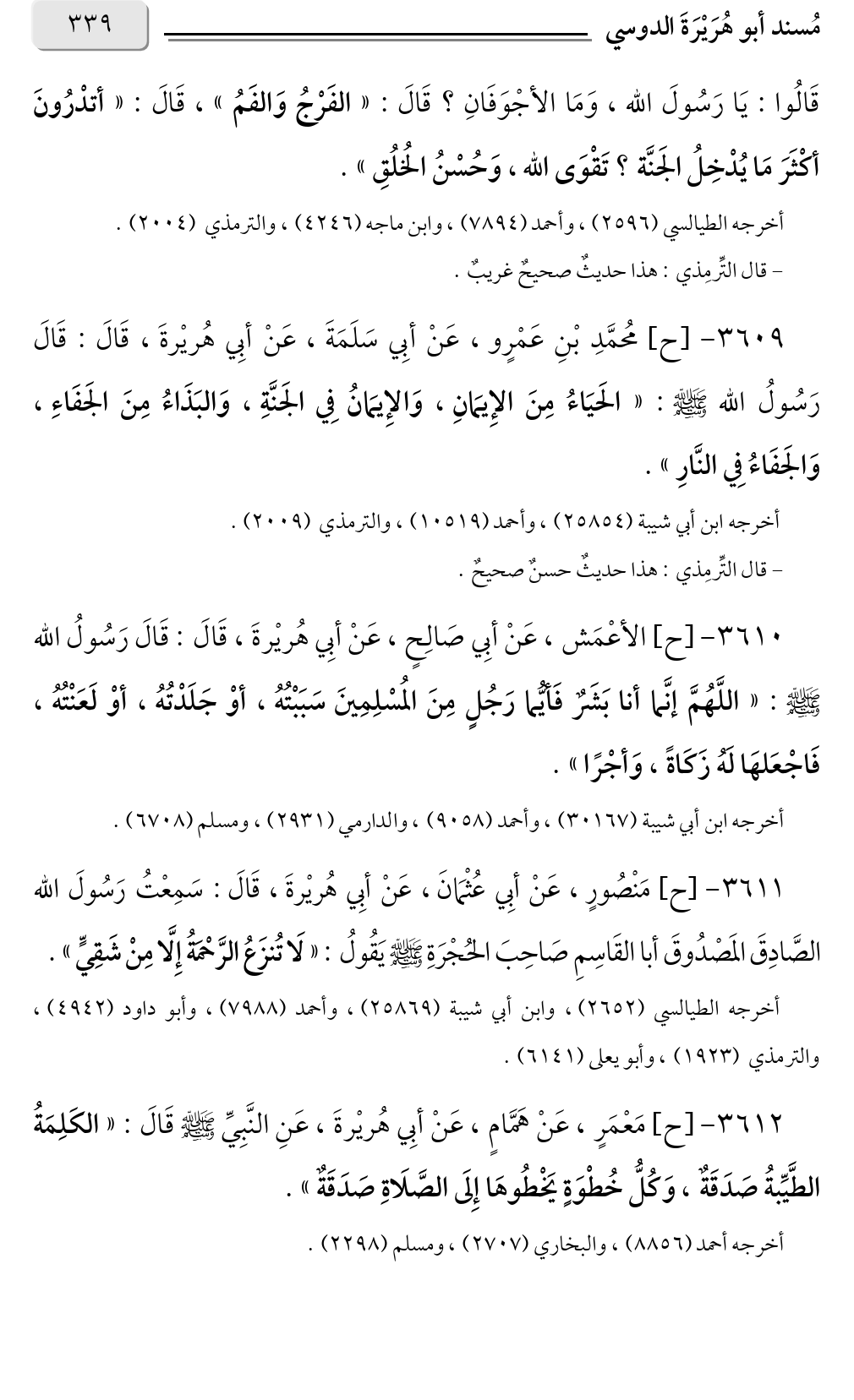 أخرجه ابن أبي شيبة (٢٥٨٥٤)، وأحمد (١٠٥١٩)، والترمذي (٢٠٠٩).