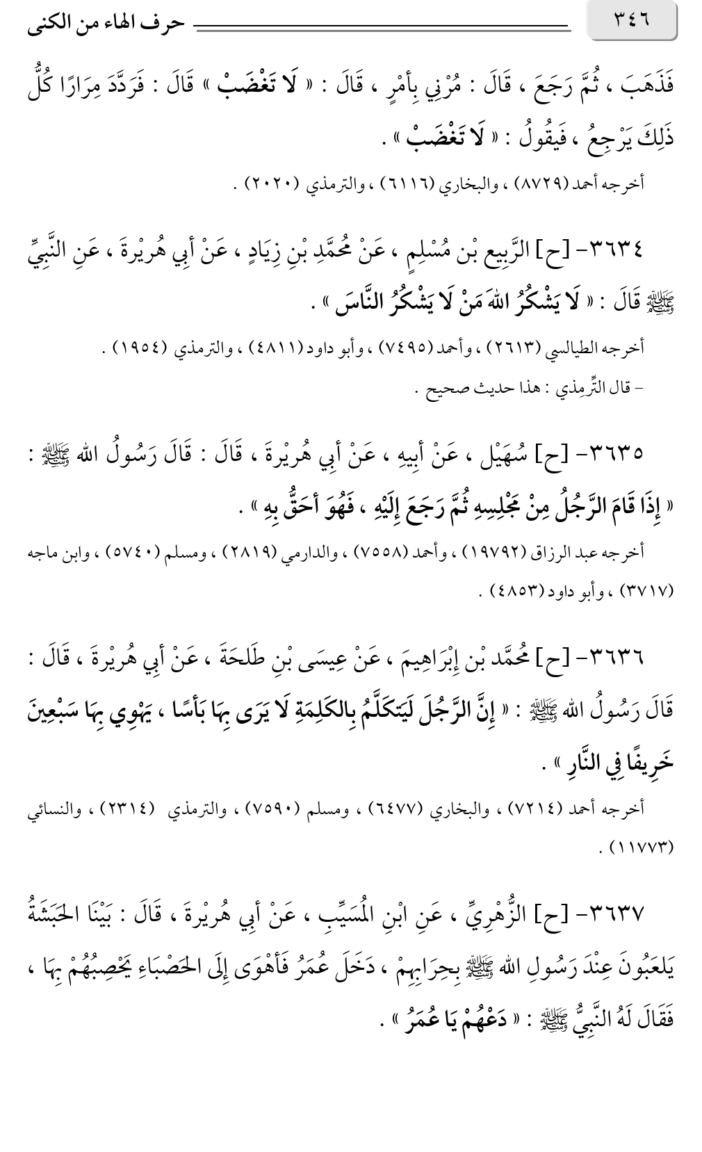 ٣٦٣٤ - [ح] الرَّبِيع بْن مُسْلِمٍ، عَنْ مُحمَّدِ بْنِ زِيَادٍ، عَنْ أبِي هُريْرةَ، عَنِ النَّبِيِّ صلى الله عليه وسلم قَالَ: «لَا يَشْكُرُ اللهَ مَنْ لَا يَشْكُرُ النَّاسَ».
