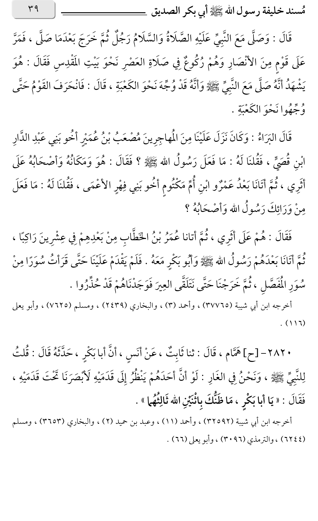 أخرجه ابن أبي شيبة (٣٢٥٩٢)، وأحمد (١١)، وعبد بن حميد (٢)، والبخاري (٣٦٥٣)، ومسلم (٦٢٤٤)، والترمذي (٣٠٩٦)، وأبو يعلى (٦٦).