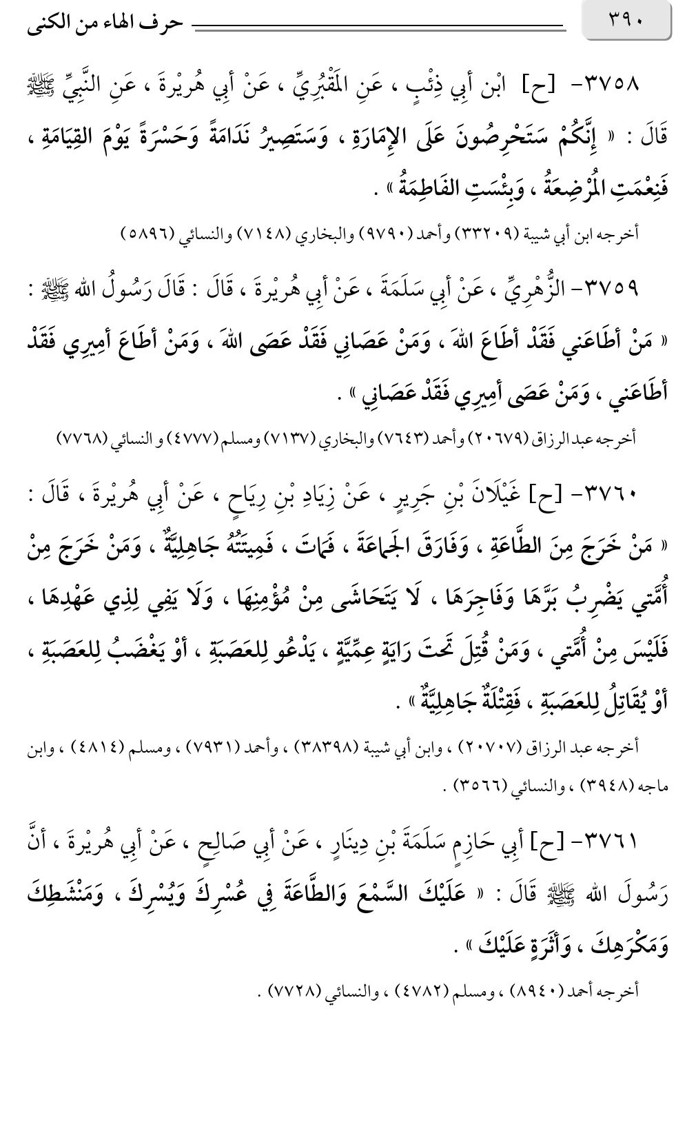 ٣٧٥٩ - الزُّهْرِيِّ، عَنْ أبِي سَلَمَةَ، عَنْ أبِي هُريْرةَ، قَالَ: قَالَ رَسُولُ الله صلى الله عليه وسلم: «مَنْ أطَاعَني فَقَدْ أطَاعَ اللهَ، وَمَنْ عَصَانِي فَقَدْ عَصَى اللهَ، وَمَنْ أطَاعَ أمِيرِي فَقَدْ أطَاعَني، وَمَنْ عَصَى أمِيرِي فَقَدْ عَصَانِي».