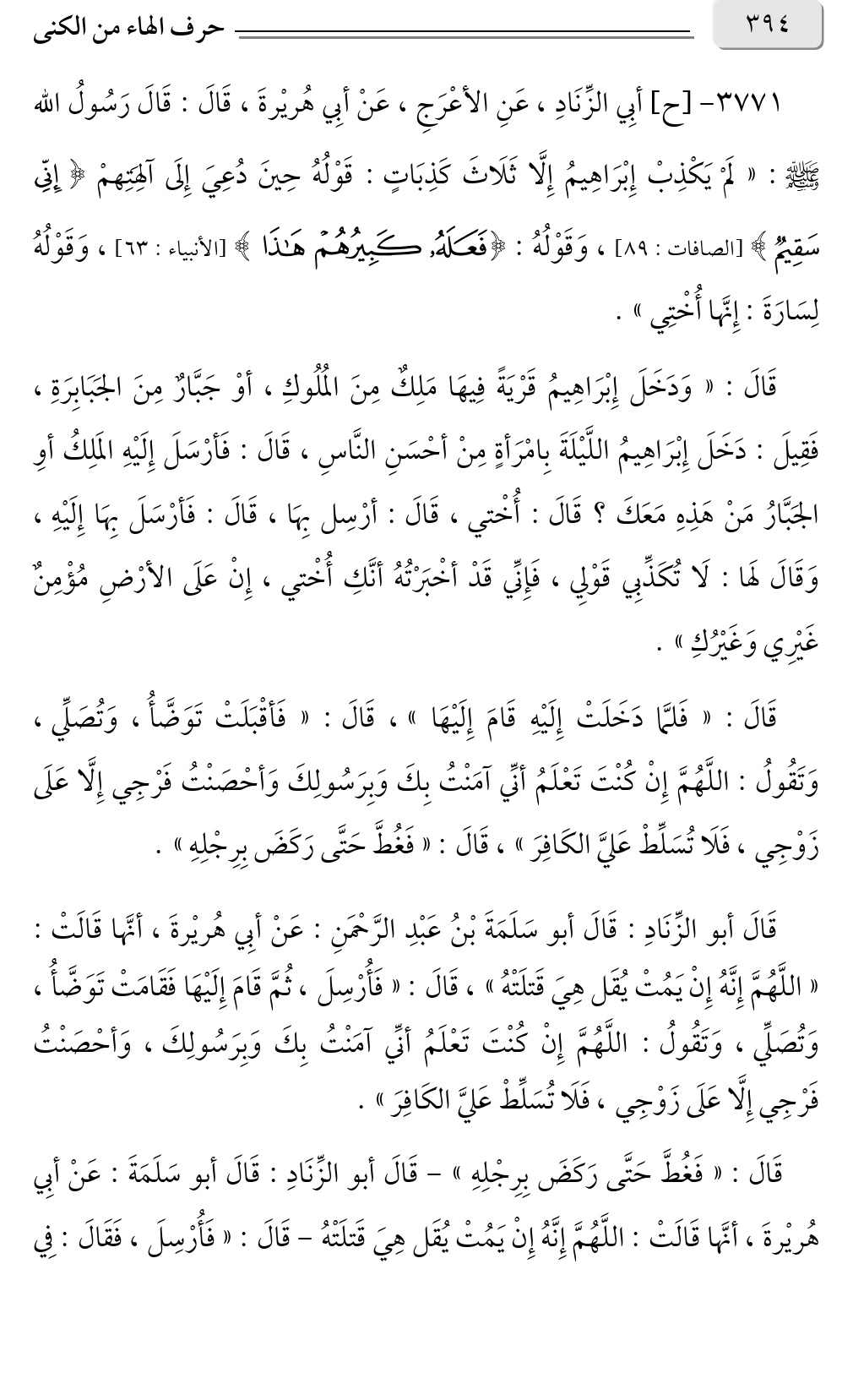 ٣٧٧١ - [ح] أبِي الزِّنَادِ، عَنِ الأعْرَجِ، عَنْ أبِي هُريْرةَ، قَالَ: قَالَ رَسُولُ الله