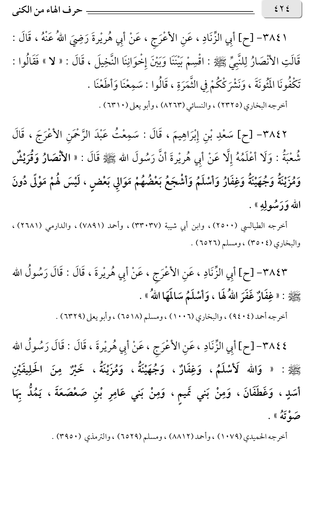 ٣٨٤٣ - [ح] أبِي الزِّنَادِ، عَنِ الأعْرَجِ، عَنْ أبِي هُريْرةَ، قَالَ: قَالَ رَسُولُ الله صلى الله عليه وسلم: «غِفَارٌ غَفَرَ اللهُ لَها، وَأسْلَمُ سَالمَهَا اللهُ».