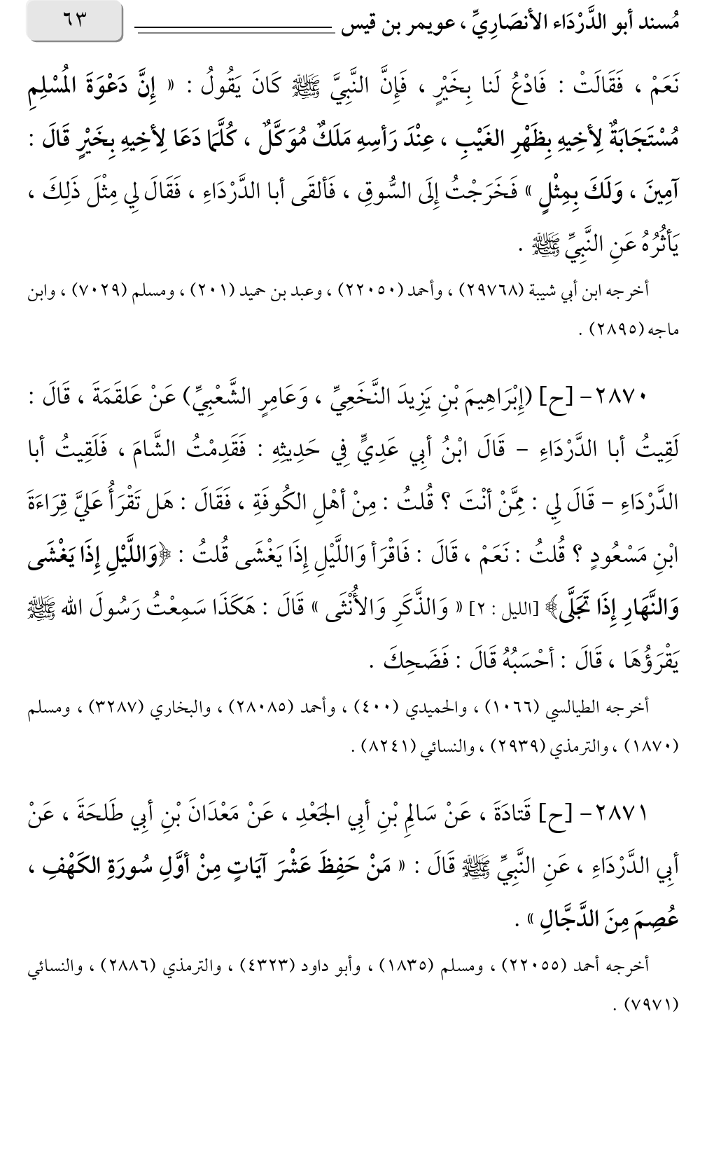 أخرجه ابن أبي شيبة (٢٩٧٦٨)، وأحمد (٢٢٠٥٠)، وعبد بن حميد (٢٠١)، ومسلم (٧٠٢٩)، وابن ماجة (٢٨٩٥).